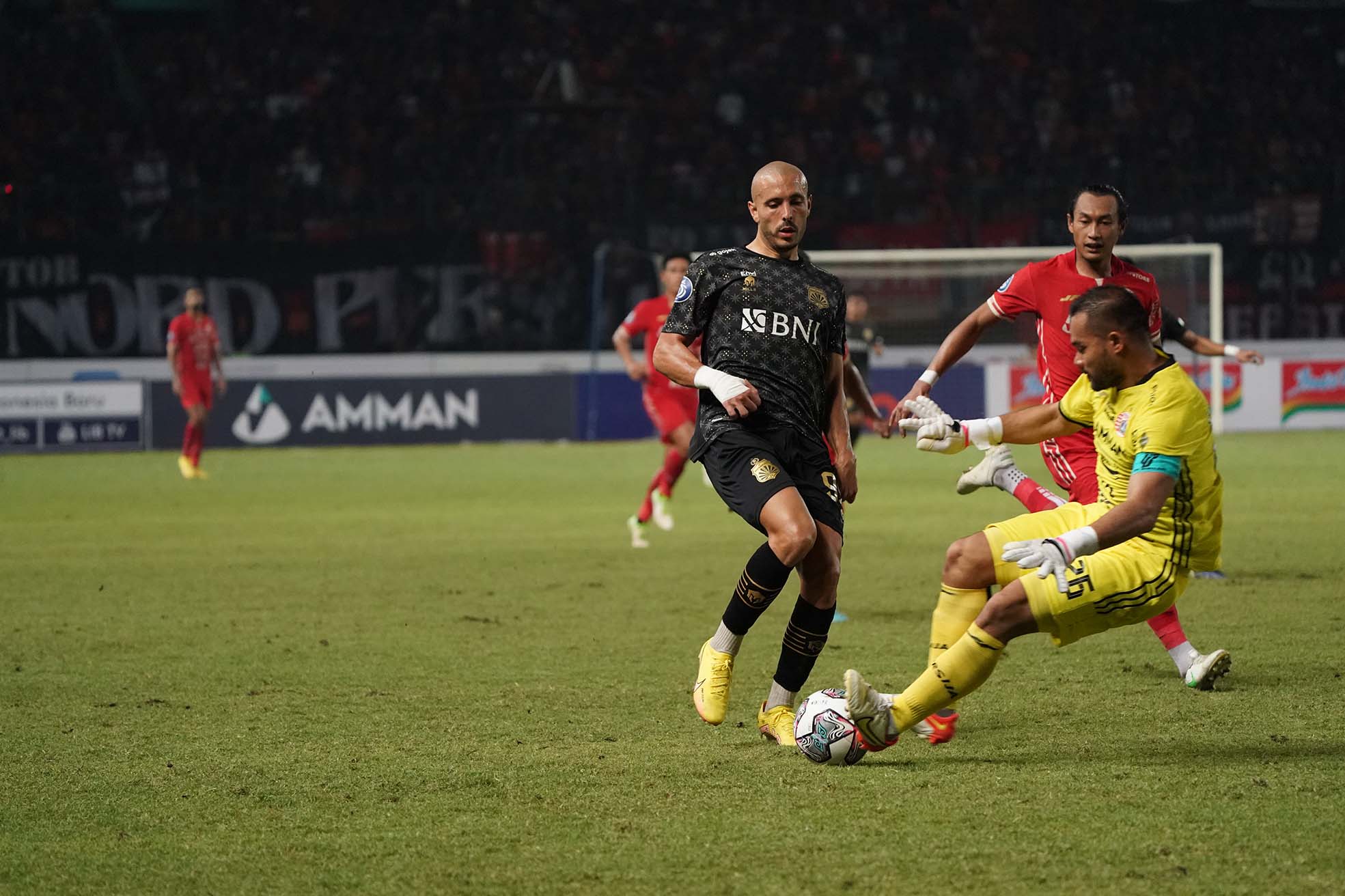 Pesepakbola asal klub Bhayangkara FC, Youssef Ezzejjari Lhanaoui (55) saat berlaga melawan Persija Jakarta di Stadion Patriot Chandra Bhaga Bekasi, Sabtu (3/9). Bhayangkara FC takluk dari Persija Jakarta dengan skor tipis 1-2. Kedua gol Persija Jakarta ke gawang Bhayangkara FC dicetak oleh Michael Krmencik. (Foto by : sportsmoment.id/Erly Bahtiar)