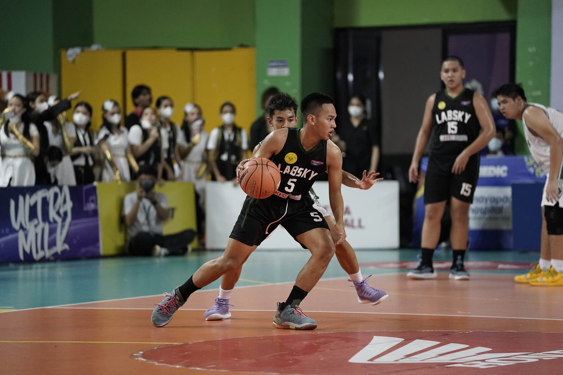 Pebasket SMA Labschool Jakarta, Malik Abhirama Putrayudha (5) menguasai bola saat melawan tim SMA Al Izhar Jakarta pada turnamen Basket Honda DBL with KFC 2022 DKI Jakarta Series - North & Central Region yang berlangsung pada Jumat, 7 Oktober 2022 di GOR Bulungan Jakarta. SMA Labschool Jakarta unggul atas SMA AL- Izhar Jakarta dengan skor 45-38 (Foto by : Sportsmoment.id/Erly Bahtiar).