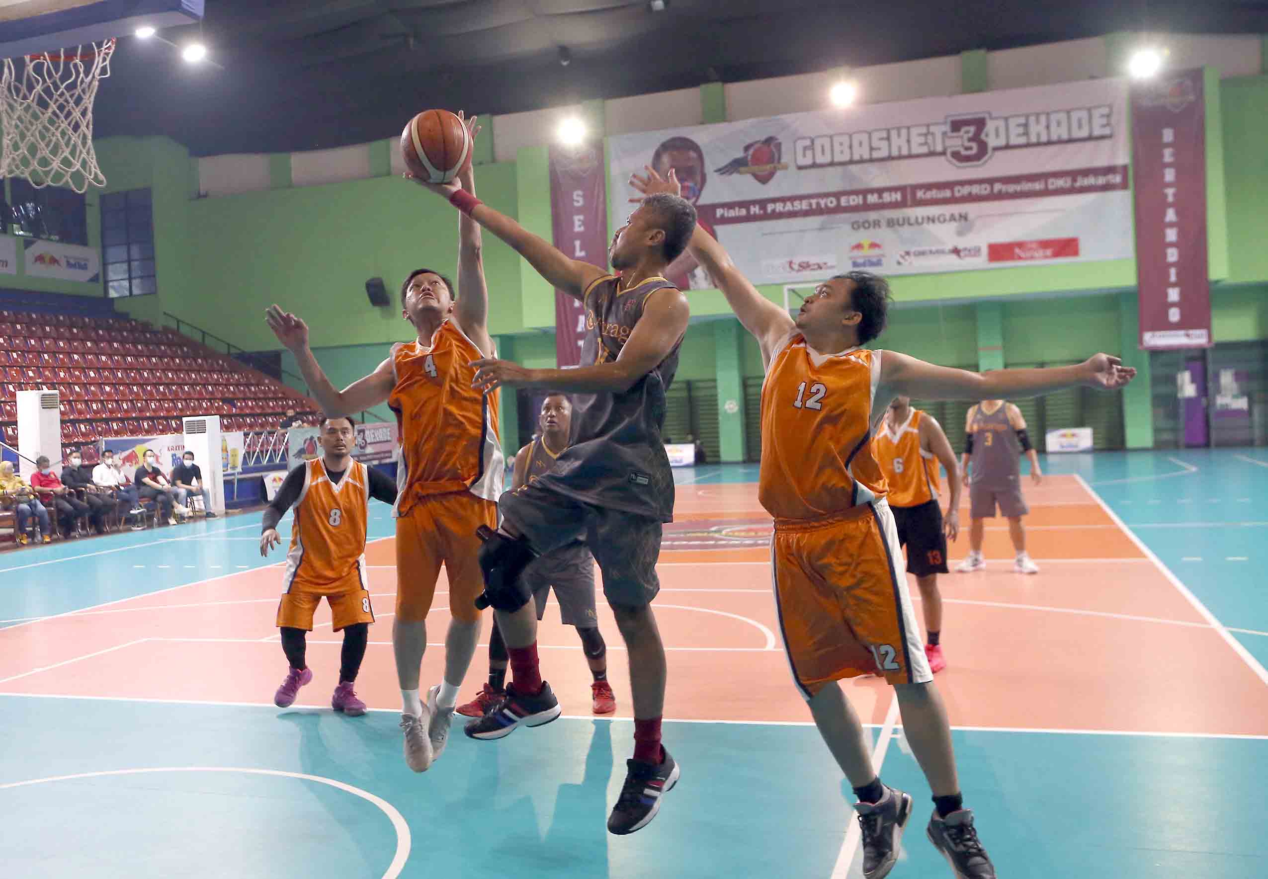 Pertandingan antara Jusraga kontra tim Oranye berakhir dengan skor 52 vs 42. Jumlah tersebut akan dibulatkan menjadi Rp 10 juta oleh Ketua Umum Perbasi DKI Jakarta terpilih, Lexyndo Hakim, yang merupakan inisiator dari eksibisi itu di GOR Bulungan Jakarta, 30 Januari 2022 (Foto : Erly Bahtiar/sportsmoment.id)