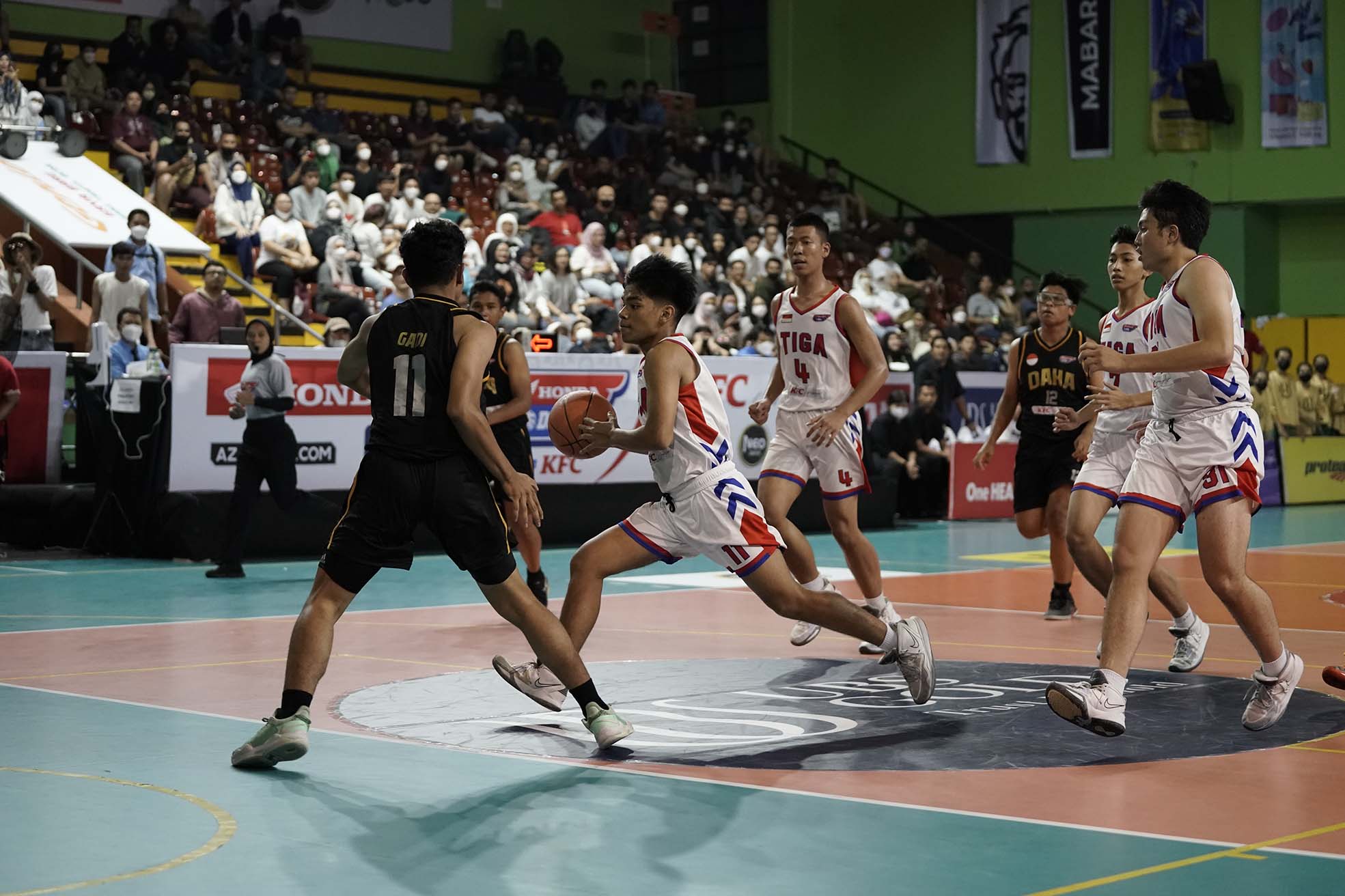 Pebasket SMAN 3 Jakarta, Josua Ronaldo Davico Marpaung (11) menguasai bola saat melawan tim SMAN 82 Jakarta pada turnamen Basket Honda DBL with KFC 2022 DKI Jakarta Series - North & Central Region yang berlangsung pada Jumat, 7 Oktober 2022 di GOR Bulungan Jakarta. SMAN 3 Jakarta unggul atas SMAN 82 Jakarta dengan skor 35-23 (Foto by : Sportsmoment.id/Erly Bahtiar).