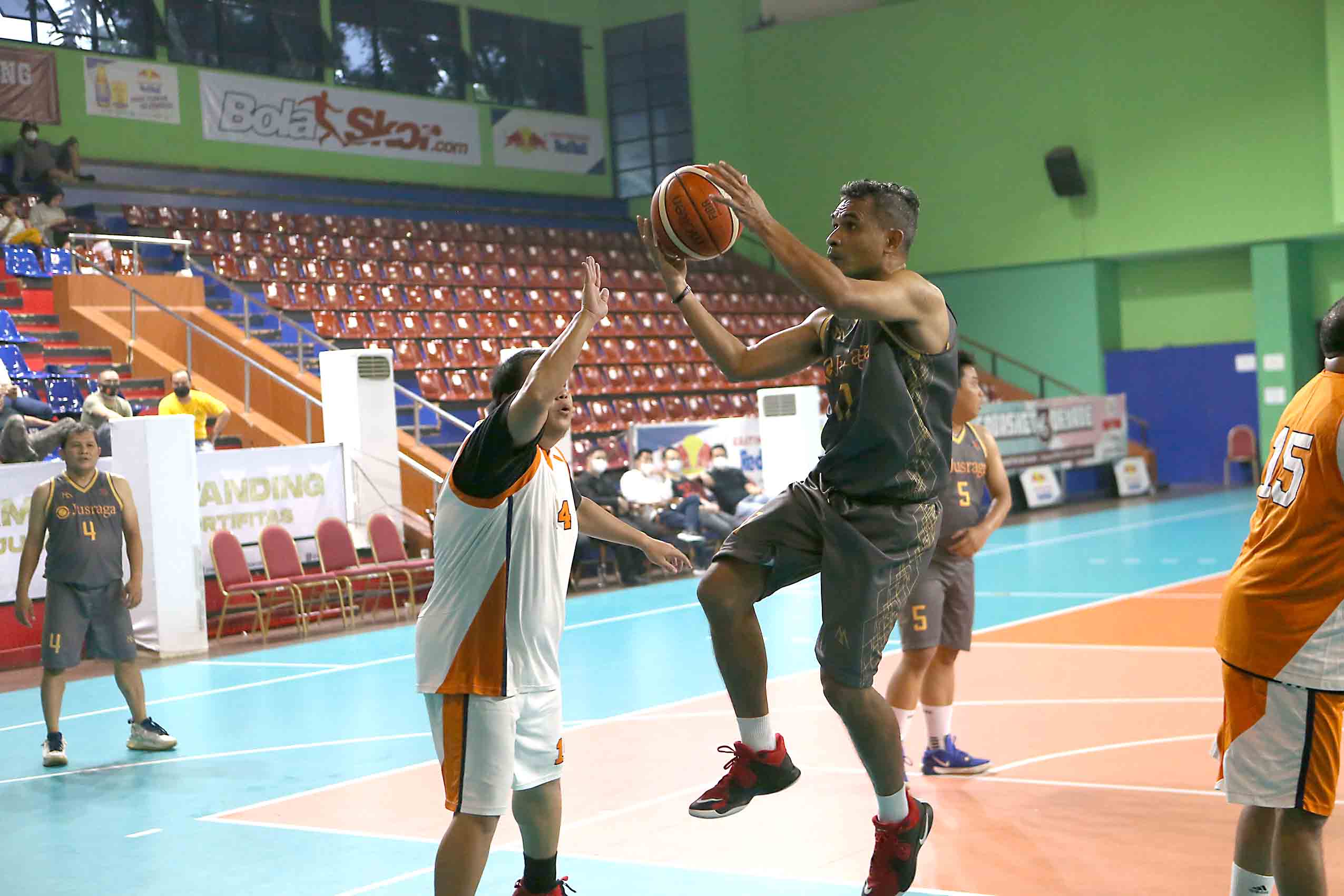 Pertandingan antara Jusraga kontra tim Oranye berakhir dengan skor 52 vs 42. Jumlah tersebut akan dibulatkan menjadi Rp 10 juta oleh Ketua Umum Perbasi DKI Jakarta terpilih, Lexyndo Hakim, yang merupakan inisiator dari eksibisi itu di GOR Bulungan Jakarta, 30 Januari 2022 (Foto : Erly Bahtiar/sportsmoment.id)