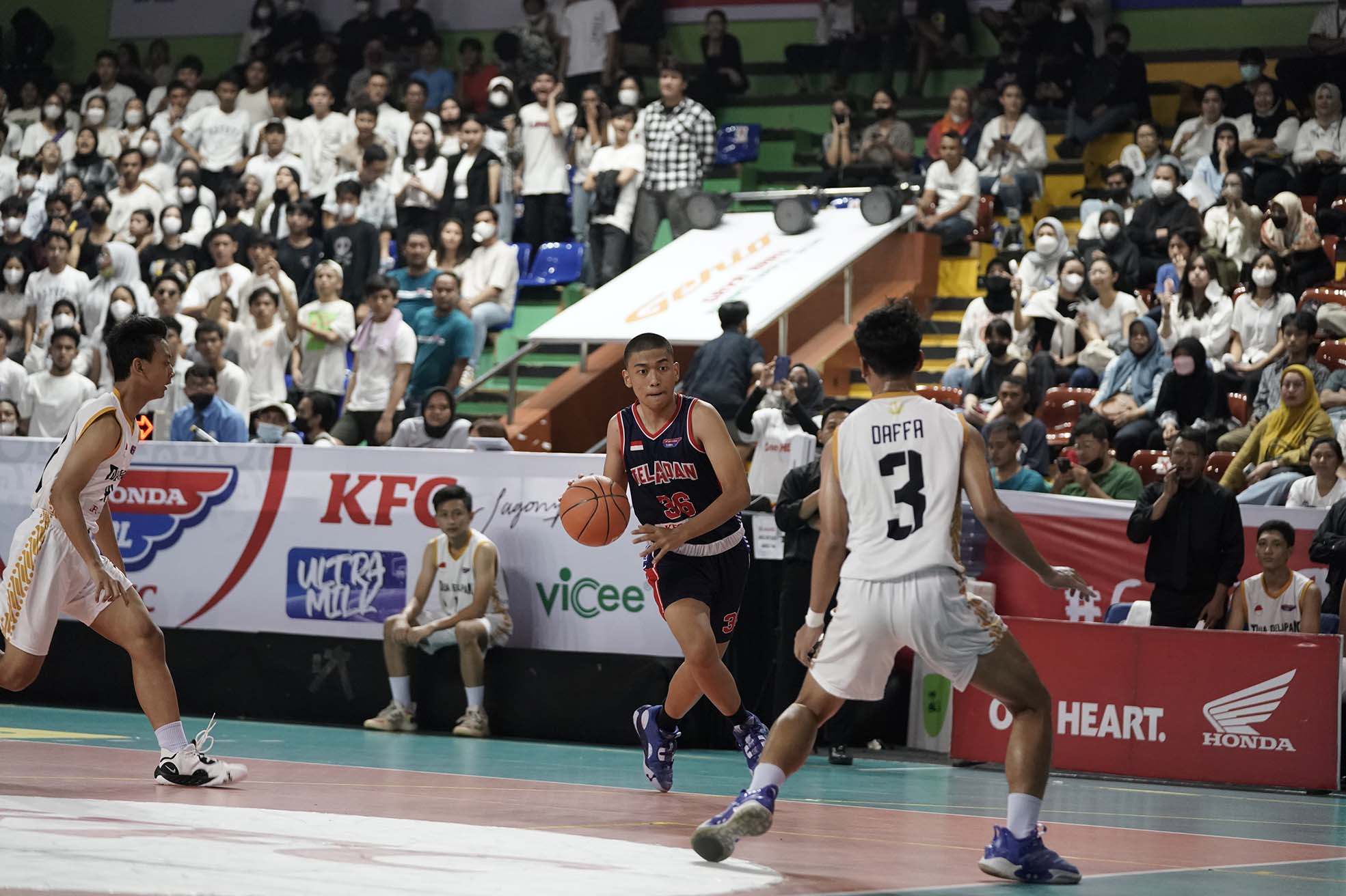 Pebasket SMAN 3 Jakarta, Marvelino Saladin Irawan (36) menguasai bola saat melawan tim SMAN 28 Jakarta pada turnamen Basket Honda DBL with KFC 2022 DKI Jakarta Series - North & Central Region yang berlangsung pada Sabtu, 8 Oktober 2022 di GOR Bulungan Jakarta. SMAN 3 Jakarta dikalahkan SMAN 28 Jakarta dengan skor 33-37 (Foto by : Sportsmoment.id/Erly Bahtiar).