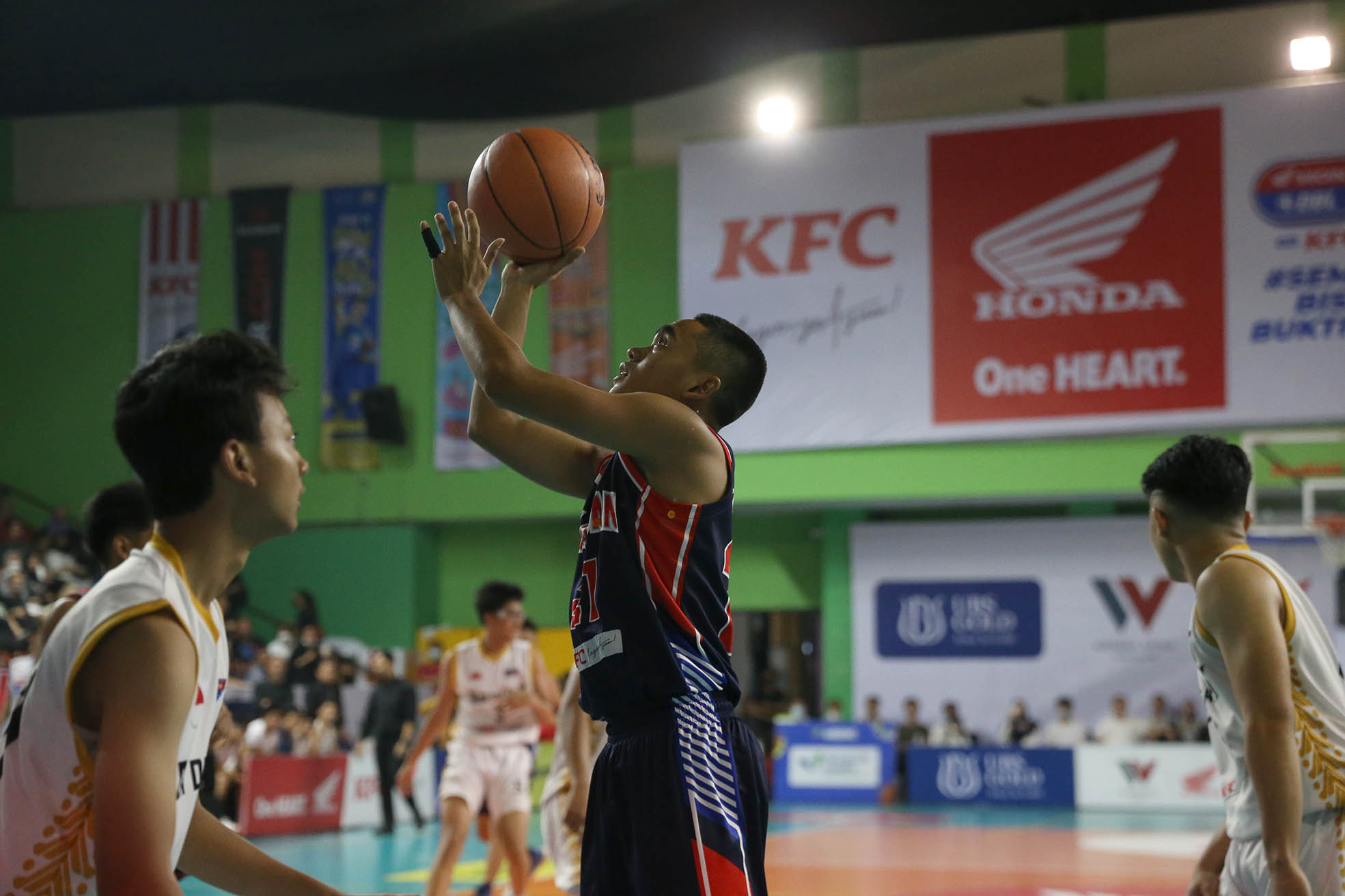 Pebasket SMAN 3 Jakarta, Farly Farrelino (21) menguasai bola saat melawan tim SMAN 28 Jakarta pada turnamen Basket Honda DBL with KFC 2022 DKI Jakarta Series - North & Central Region yang berlangsung pada Sabtu, 8 Oktober 2022 di GOR Bulungan Jakarta. SMAN 3 Jakarta dikalahkan SMAN 28 Jakarta dengan skor 33-37 (Foto by : Sportsmoment.id/Erly Bahtiar).