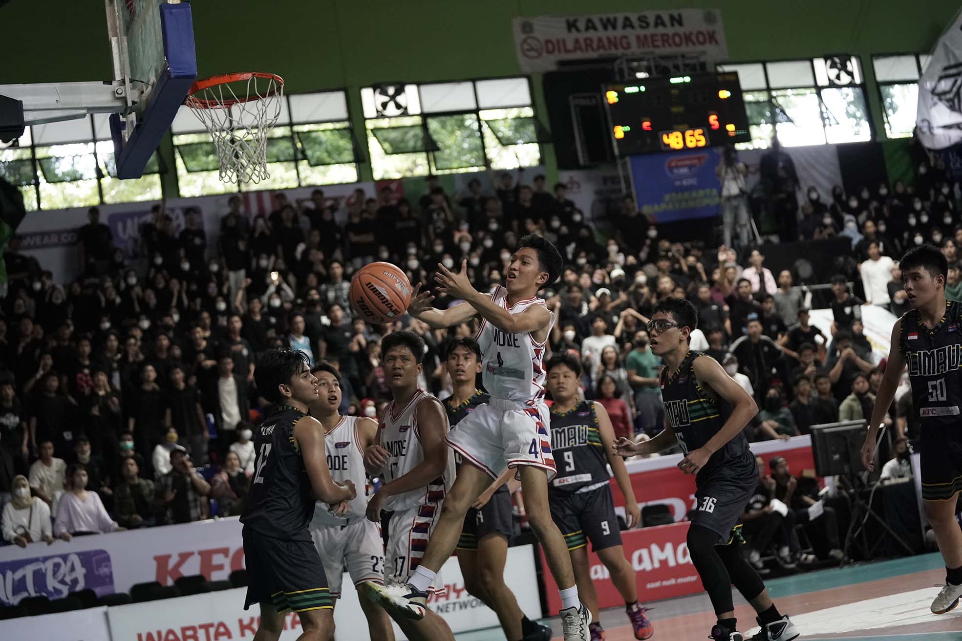 Pebasket MAN 4 Jakarta, Fajrul Falah Ramadhan (4) menguasai bola saat melawan tim SMA Muhammadiyah 3 Jakarta pada turnamen Basket Honda DBL with KFC 2022 DKI Jakarta Series - North & Central Region yang berlangsung pada Sabtu, 8 Oktober 2022 di GOR Bulungan Jakarta. MAN 4 Jakarta dikalahkan SMA Muhammadiyah 3 Jakarta dengan skor 38-40 (Foto by : Sportsmoment.id/Erly Bahtiar).