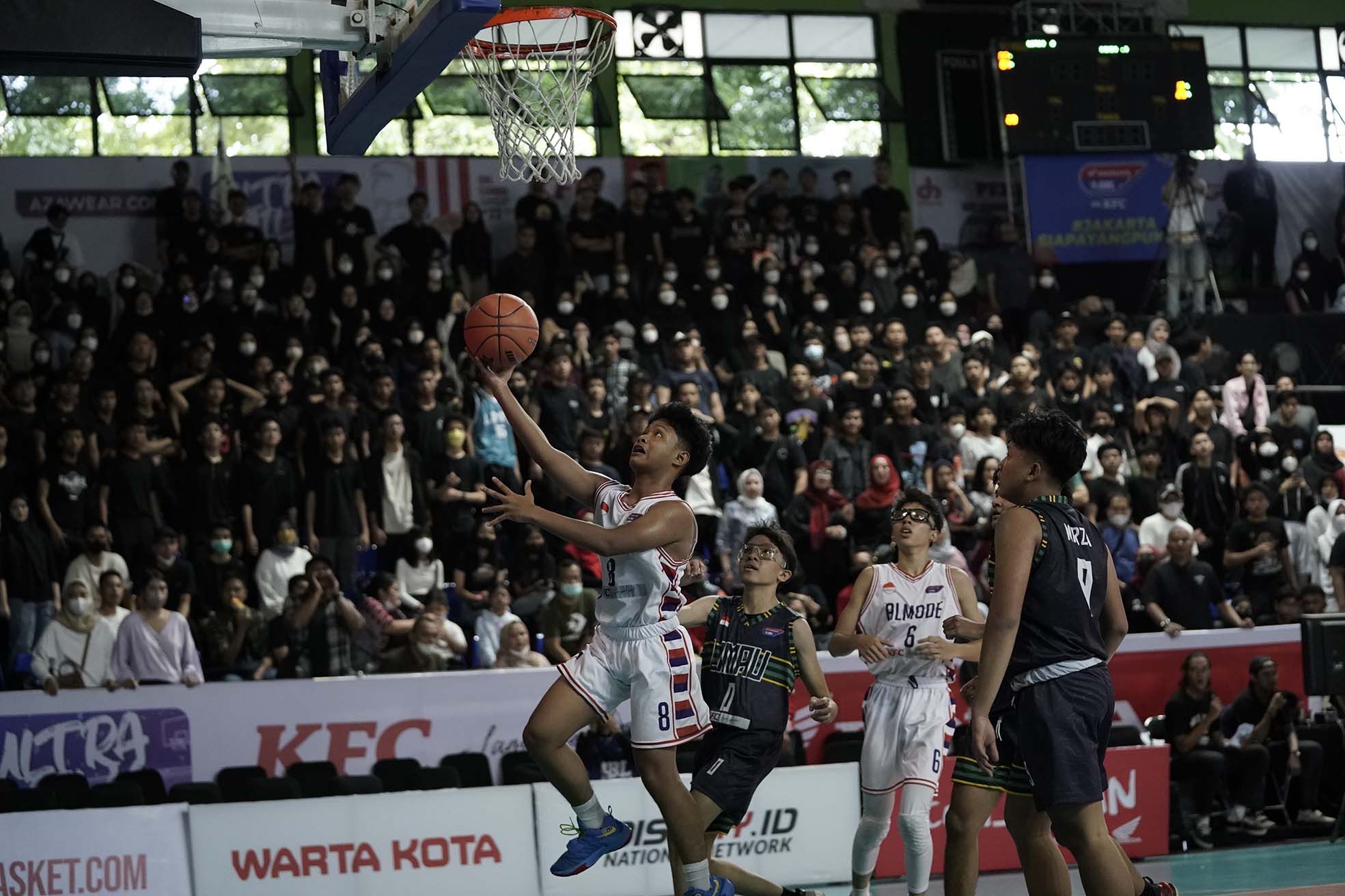 Pebasket MAN 4 Jakarta, Ahmad Afif Valino (8) menguasai bola saat melawan tim SMA Muhammadiyah 3 Jakarta pada turnamen Basket Honda DBL with KFC 2022 DKI Jakarta Series - North & Central Region yang berlangsung pada Sabtu, 8 Oktober 2022 di GOR Bulungan Jakarta. MAN 4 Jakarta dikalahkan SMA Muhammadiyah 3 Jakarta dengan skor 38-40 (Foto by : Sportsmoment.id/Erly Bahtiar).