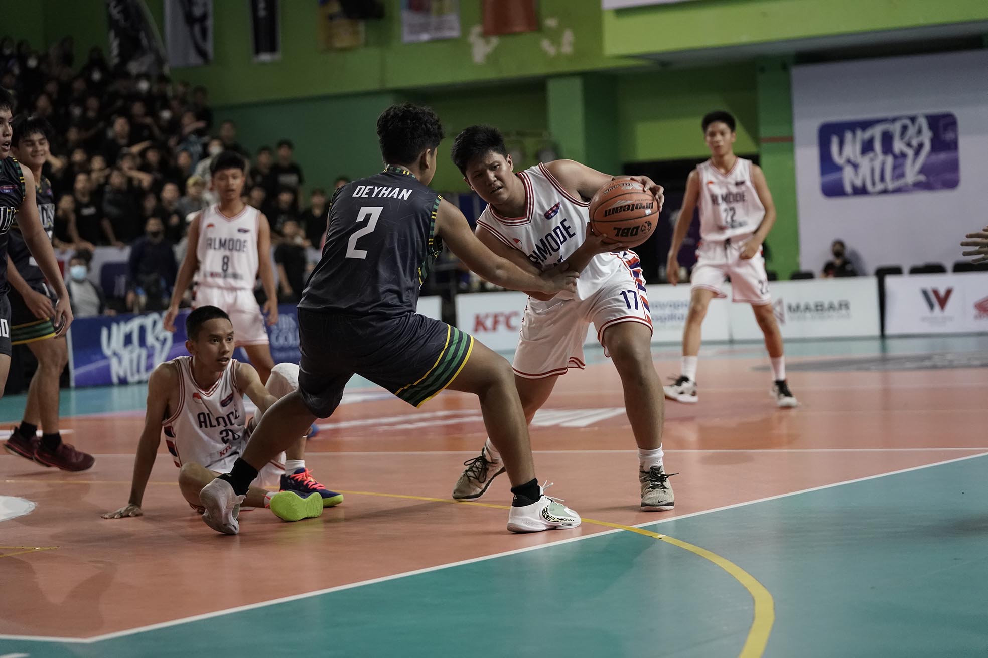 Pebasket MAN 4 Jakarta, Muhammad Danish Ramadhan (17) menguasai bola saat melawan tim SMA Muhammadiyah 3 Jakarta pada turnamen Basket Honda DBL with KFC 2022 DKI Jakarta Series - North & Central Region yang berlangsung pada Sabtu, 8 Oktober 2022 di GOR Bulungan Jakarta. MAN 4 Jakarta dikalahkan SMA Muhammadiyah 3 Jakarta dengan skor 38-40 (Foto by : Sportsmoment.id/Erly Bahtiar).