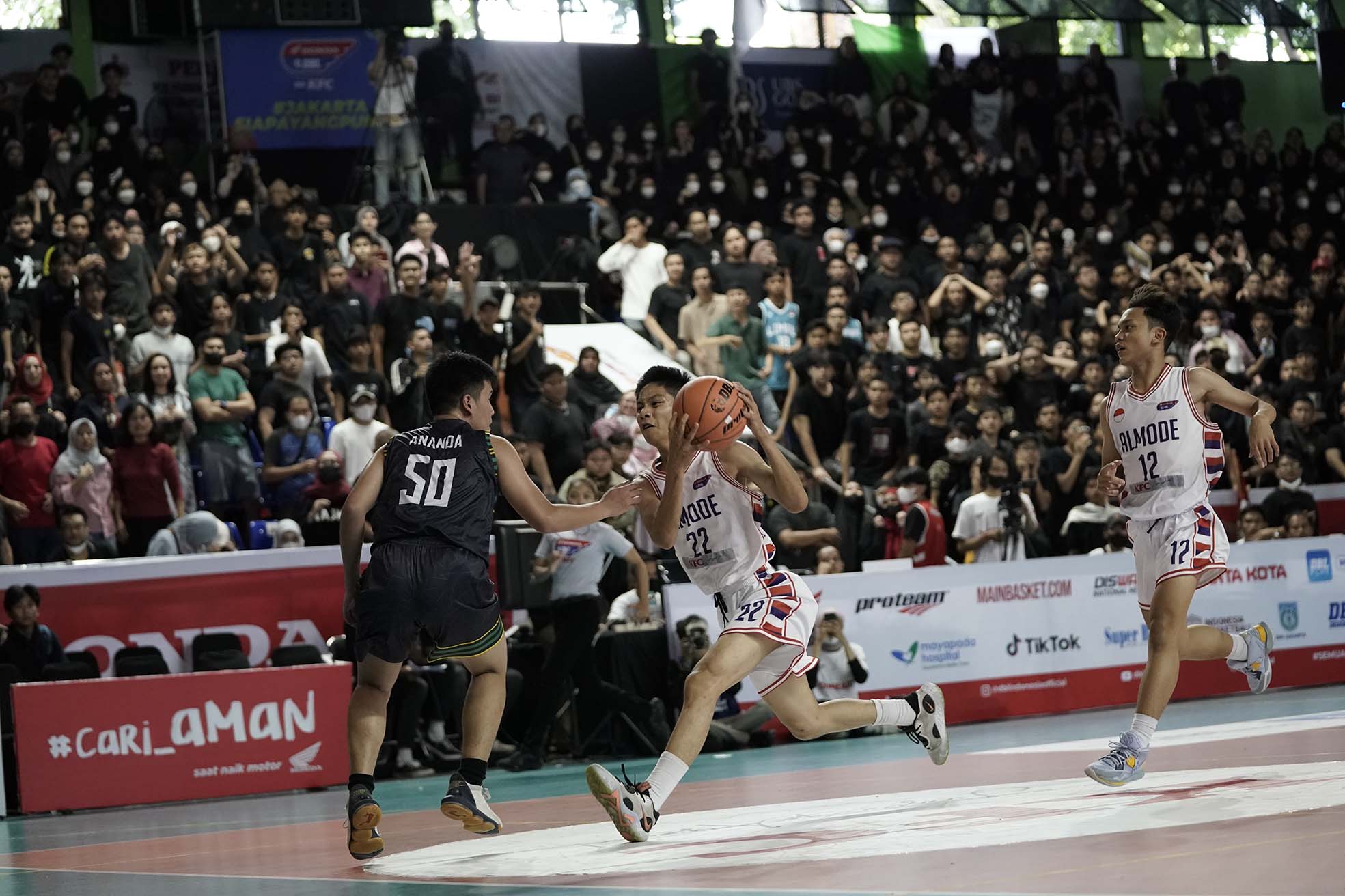 Pebasket MAN 4 Jakarta, Said Hilal Assagaf (22) menguasai bola saat melawan tim SMA Muhammadiyah 3 Jakarta pada turnamen Basket Honda DBL with KFC 2022 DKI Jakarta Series - North & Central Region yang berlangsung pada Sabtu, 8 Oktober 2022 di GOR Bulungan Jakarta. MAN 4 Jakarta dikalahkan SMA Muhammadiyah 3 Jakarta dengan skor 38-40 (Foto by : Sportsmoment.id/Erly Bahtiar).