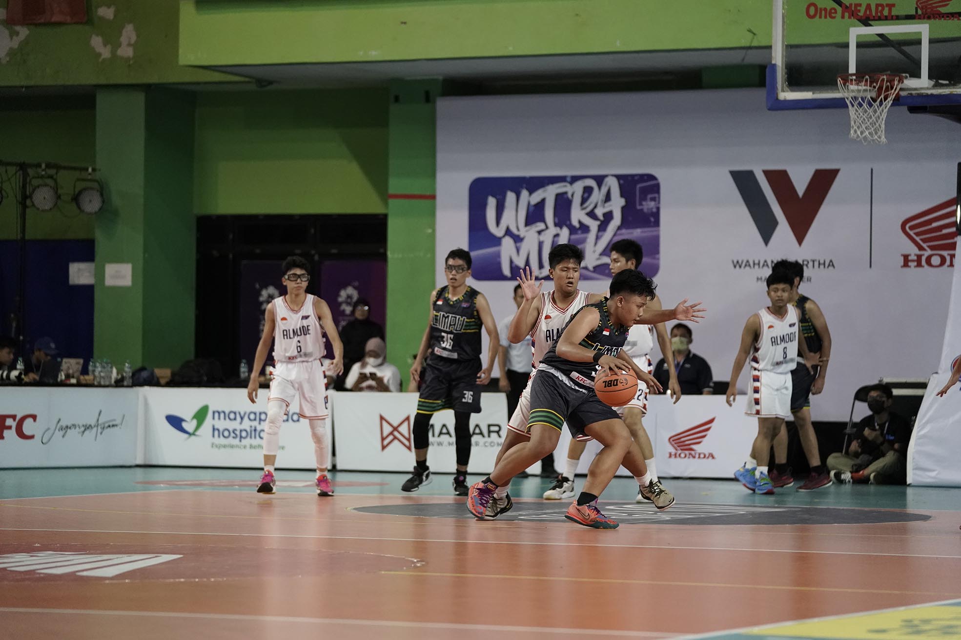 Pebasket SMA Muhammadiyah 3 Jakarta, Muhammad Mirza Efwan Fayyaz (9) menguasai bola saat melawan tim MAN 4 Jakarta pada turnamen Basket Honda DBL with KFC 2022 DKI Jakarta Series - North & Central Region yang berlangsung pada Sabtu, 8 Oktober 2022 di GOR Bulungan Jakarta. SMA Muhammadiyah 3 Jakarta unggul atas MAN 4 Jakarta dengan skor 40-38 (Foto by : Sportsmoment.id/Erly Bahtiar).