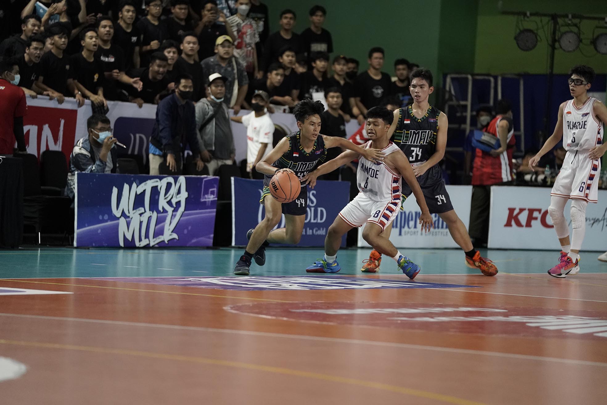 Pebasket SMA Muhammadiyah 3 Jakarta, Arsyhaliq Rashif Djajadiredja (44) menguasai bola saat melawan tim MAN 4 Jakarta pada turnamen Basket Honda DBL with KFC 2022 DKI Jakarta Series - North & Central Region yang berlangsung pada Sabtu, 8 Oktober 2022 di GOR Bulungan Jakarta. SMA Muhammadiyah 3 Jakarta unggul atas MAN 4 Jakarta dengan skor 40-38 (Foto by : Sportsmoment.id/Erly Bahtiar).