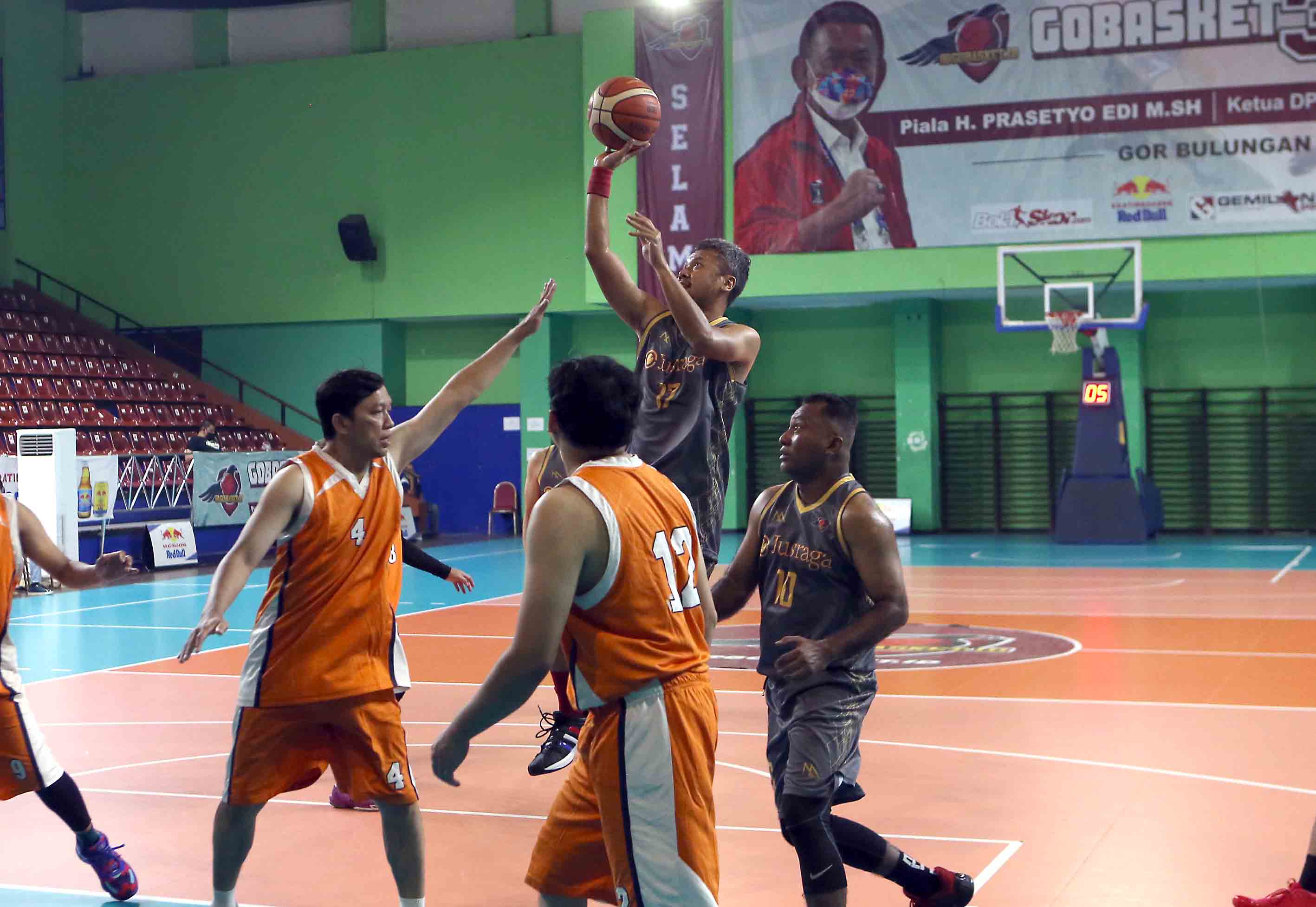 Pertandingan antara Jusraga kontra tim Oranye berakhir dengan skor 52 vs 42. Jumlah tersebut akan dibulatkan menjadi Rp 10 juta oleh Ketua Umum Perbasi DKI Jakarta terpilih, Lexyndo Hakim, yang merupakan inisiator dari eksibisi itu di GOR Bulungan Jakarta, 30 Januari 2022 (Foto : Erly Bahtiar/sportsmoment.id)
