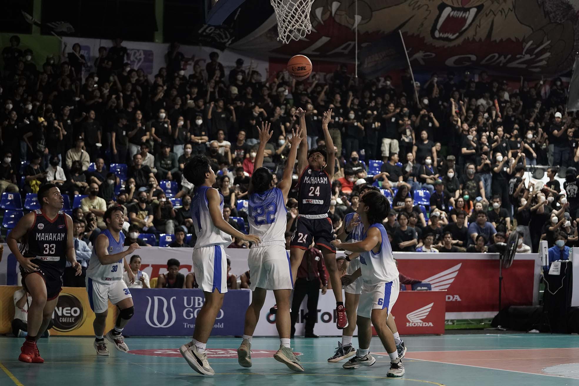 Pebasket SMAN 6 Jakarta, Rasyah Hakim Akbaruddin Ali (24) menguasai bola saat melawan tim SMA Gonzaga pada turnamen Basket Honda DBL with KFC 2022 DKI Jakarta Series - North & Central Region yang berlangsung pada Sabtu, 8 Oktober 2022 di GOR Bulungan Jakarta. SMAN 6 Jakarta unggul atas SMA Gonzaga dengan skor 51-24 (Foto by : Sportsmoment.id/Erly Bahtiar).