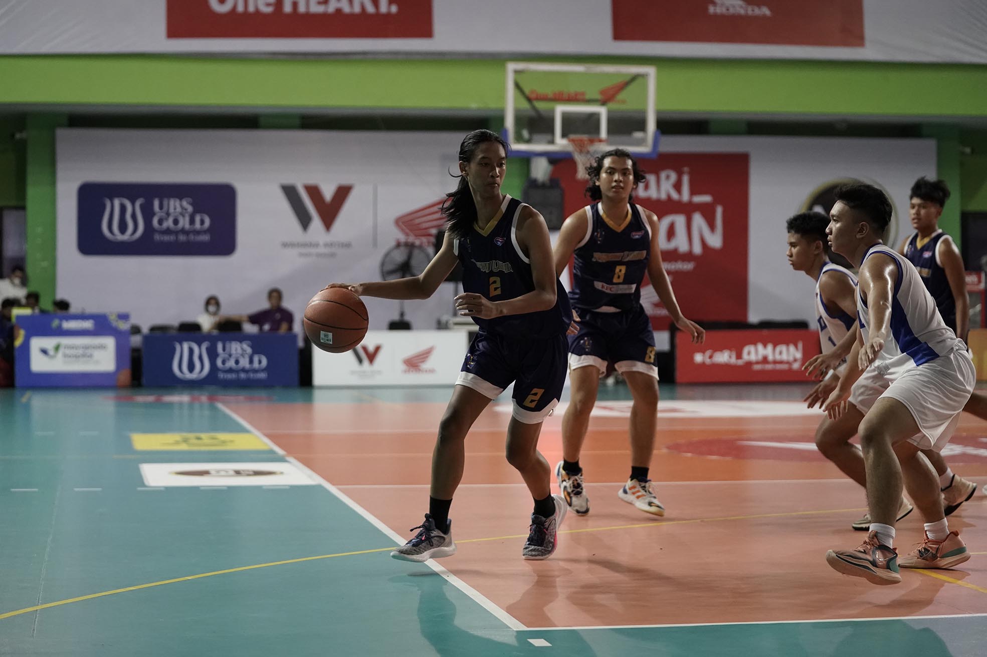 Pebasket SMA Pangudi Luhur Jakarta, David Juan (2) menguasai bola saat melawan tim SMA Al Jabr pada turnamen Basket Honda DBL with KFC 2022 DKI Jakarta Series - North & Central Region yang berlangsung pada Sabtu, 8 Oktober 2022 di GOR Bulungan Jakarta. SMA Pangudi Luhur Jakarta unggul atas SMA Al Jabr dengan skor 30-19. (Foto by : Sportsmoment.id/Erly Bahtiar).