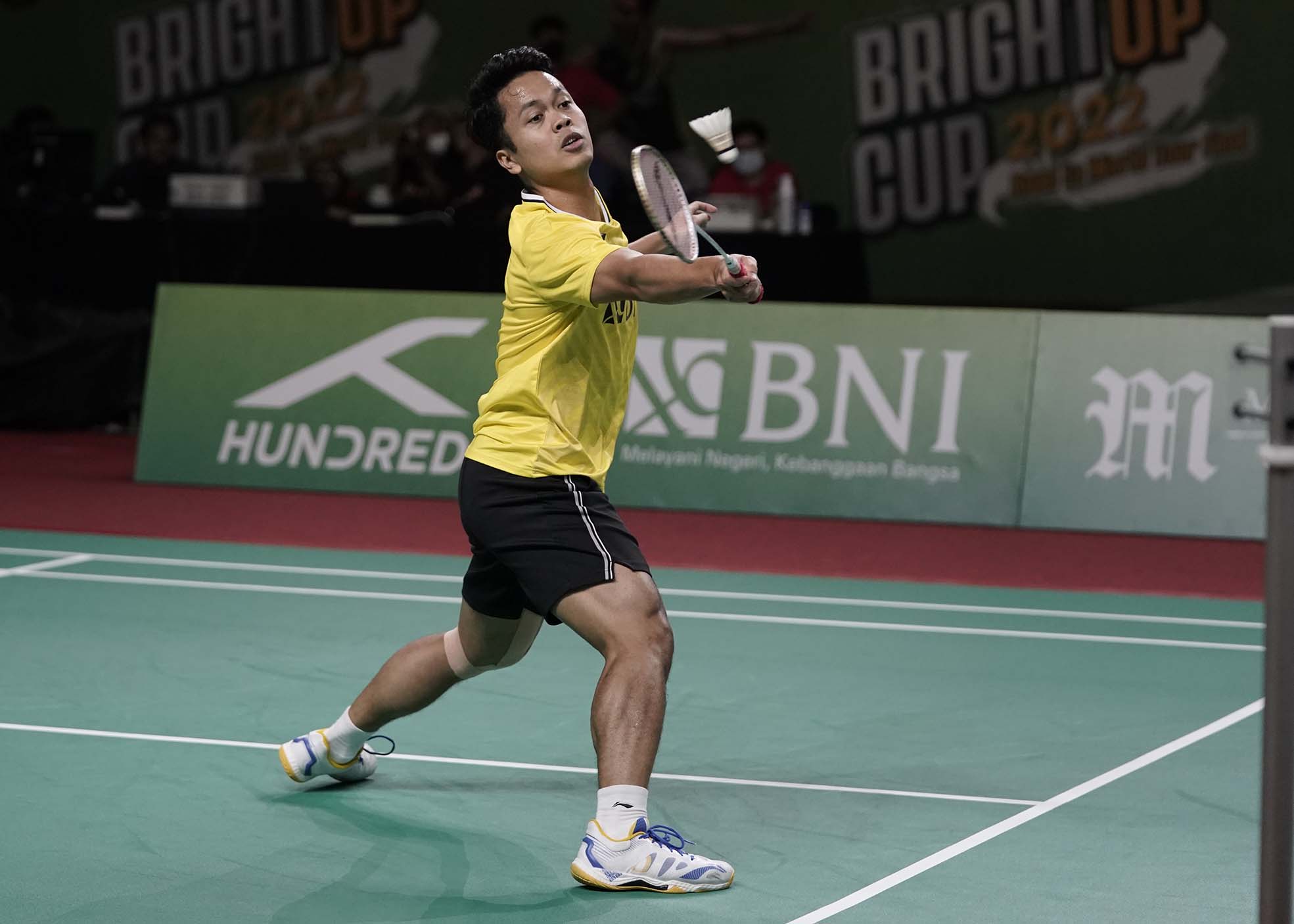 Anthony Sinisuka Ginting beraksi dalam laga ekshibisi BNI Bright Up 2022 dalam rangka menuju BWF World Tour Final yang dilaksanakan di Tenis Indoor GBK Senayan, pada 10 November 2022. (Photo : Sportsmoment/Erly Bahtiar)