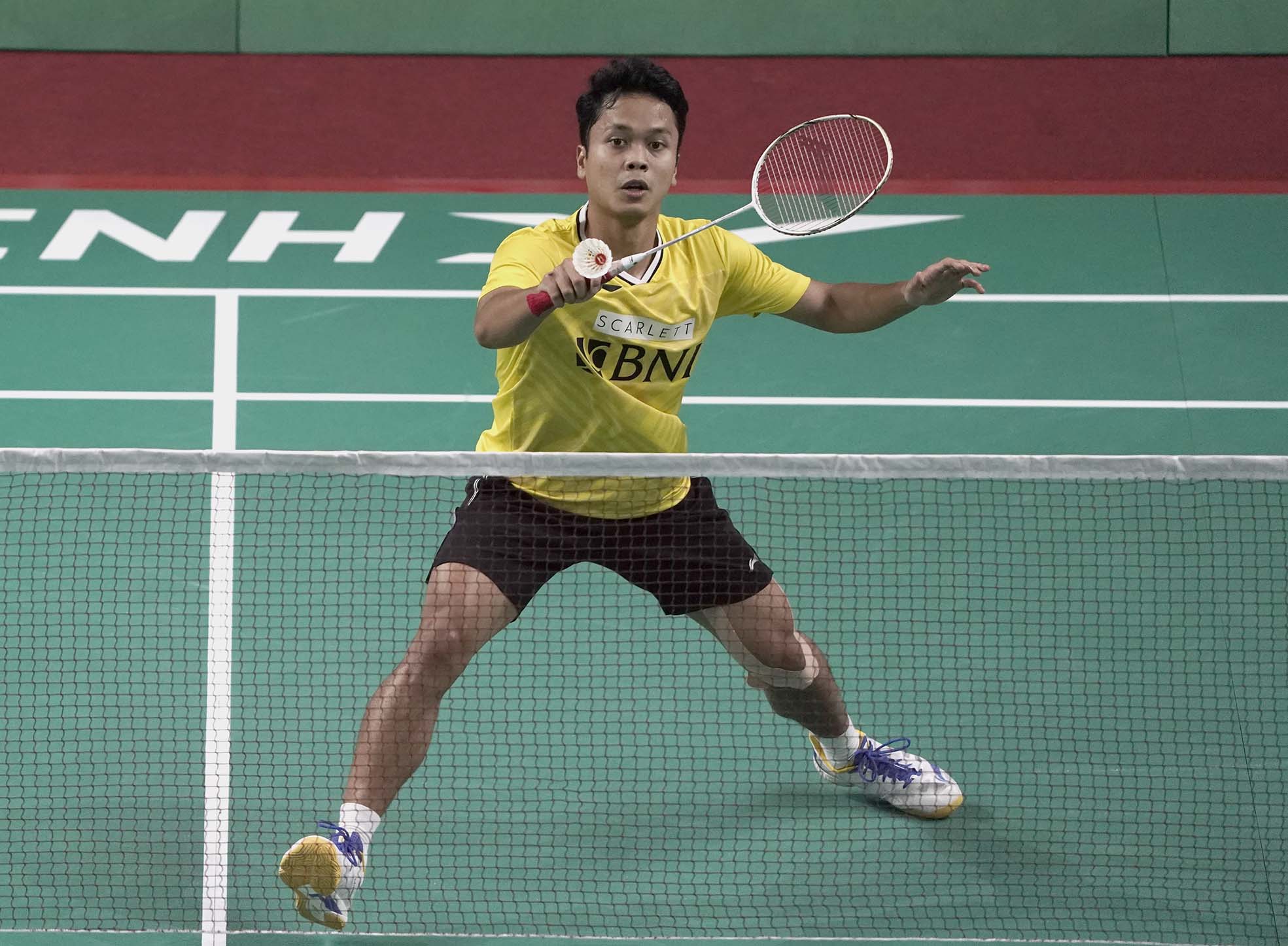 Anthony Sinisuka Ginting pebulutangkis tunggal putra Indonesia beraksi dalam laga ekshibisi BNI Bright Up 2022 dalam rangka menuju BWF World Tour Final yang dilaksanakan di Tenis Indoor GBK Senayan, pada 10 November 2022. (Photo : Sportsmoment/Erly Bahtiar)