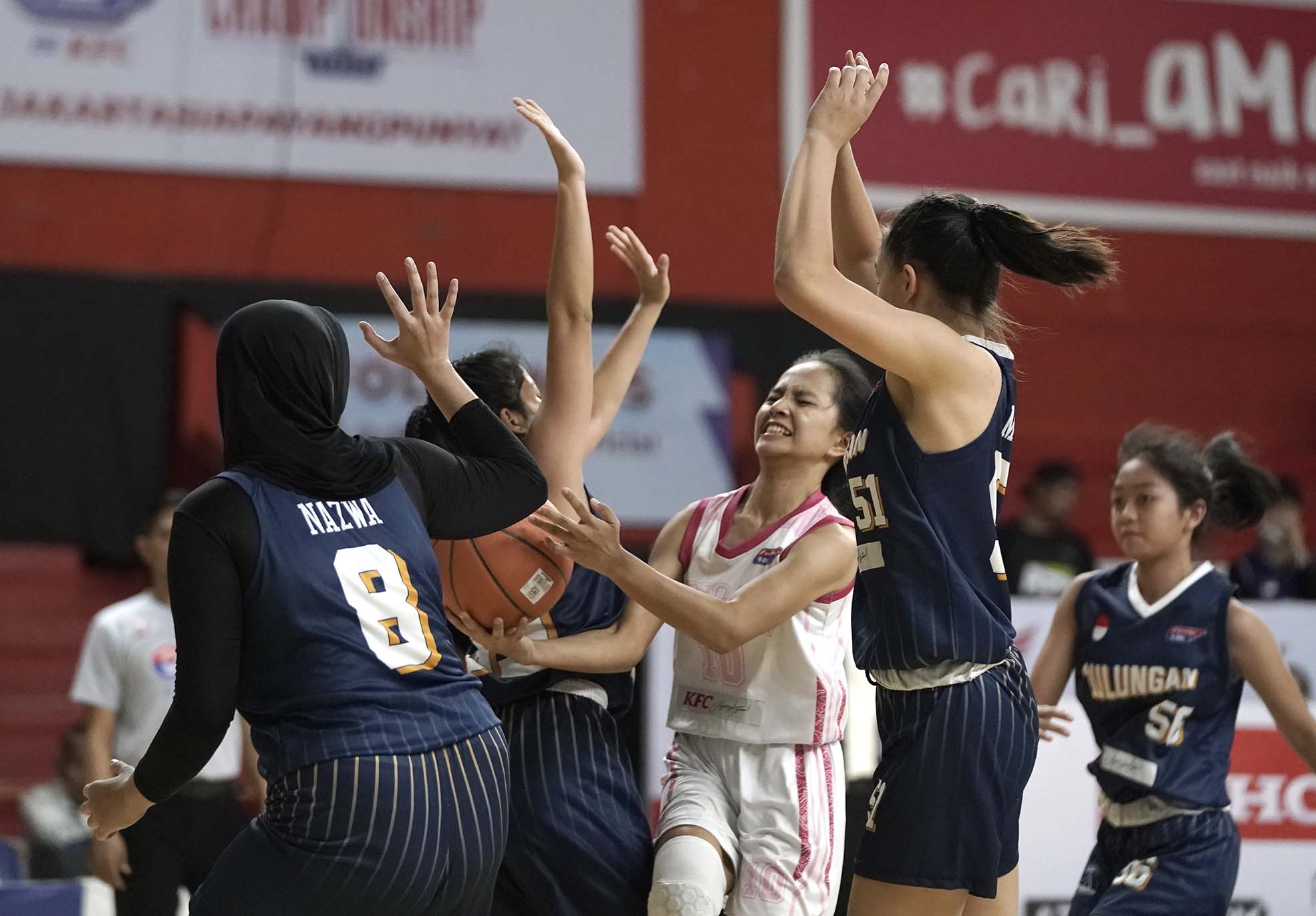 Noorindya Faisya Khanza Hanafi Pemain Basket Putri SMAN 71 Jakarta dalam aksinya di Honda DBL with KFC 2022 DKI Jakarta Championship Series yang berlangsung di Pasar Festival / Gelanggang Mahasiswa Soemantri Brojonegoro Jakarta, pada Rabu, 16 November 2022. (Photo: Sportsmoment.id/Hadi Saputra)