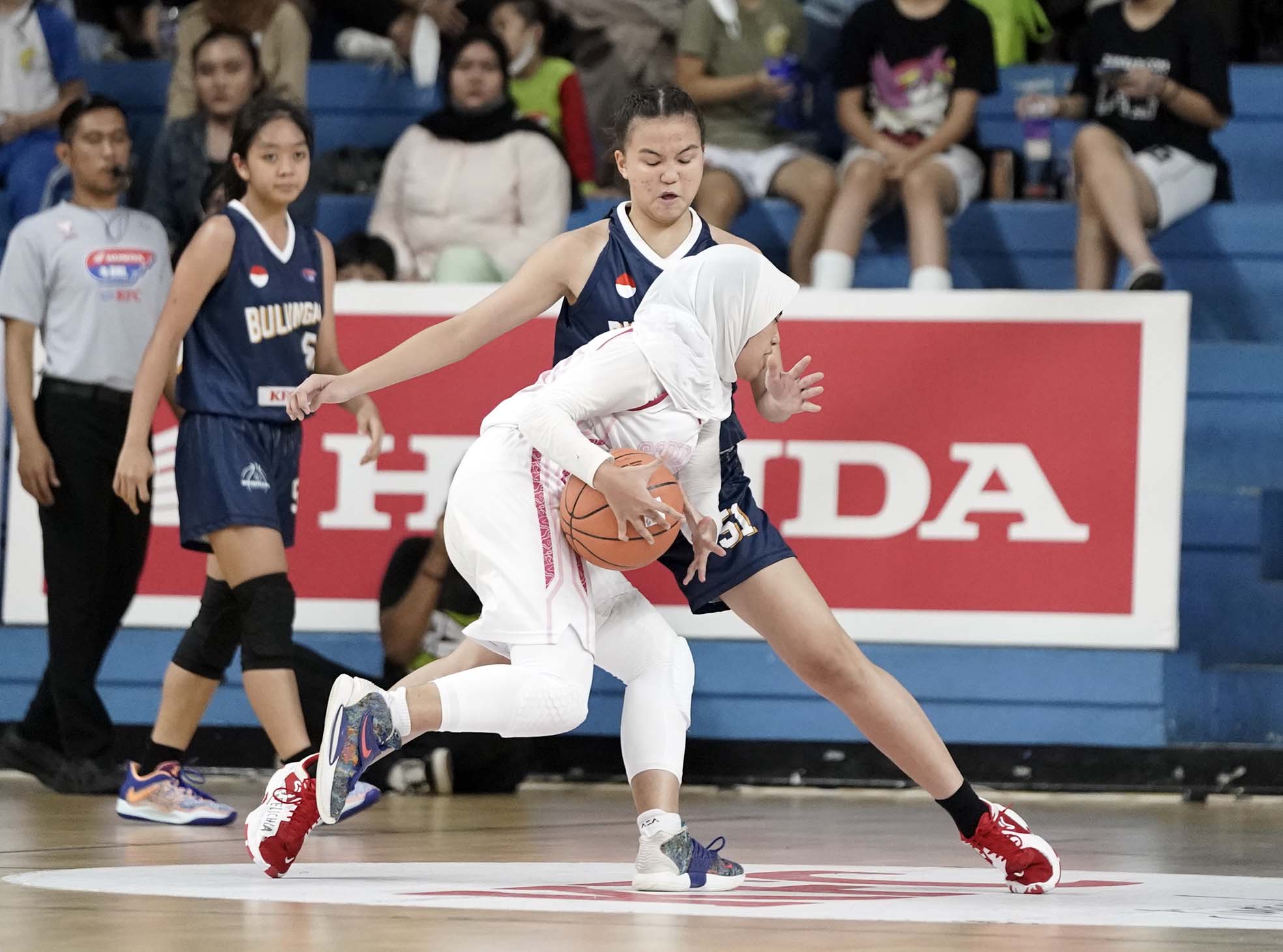 Ataya Putri Kinanti (15) Pemain Basket Putri SMAN 71 Jakarta dalam aksinya di Honda DBL with KFC 2022 DKI Jakarta Championship Series yang berlangsung di Pasar Festival / Gelanggang Mahasiswa Soemantri Brojonegoro Jakarta, pada Rabu, 16 November 2022. (Photo: Sportsmoment.id/Hadi Saputra)
