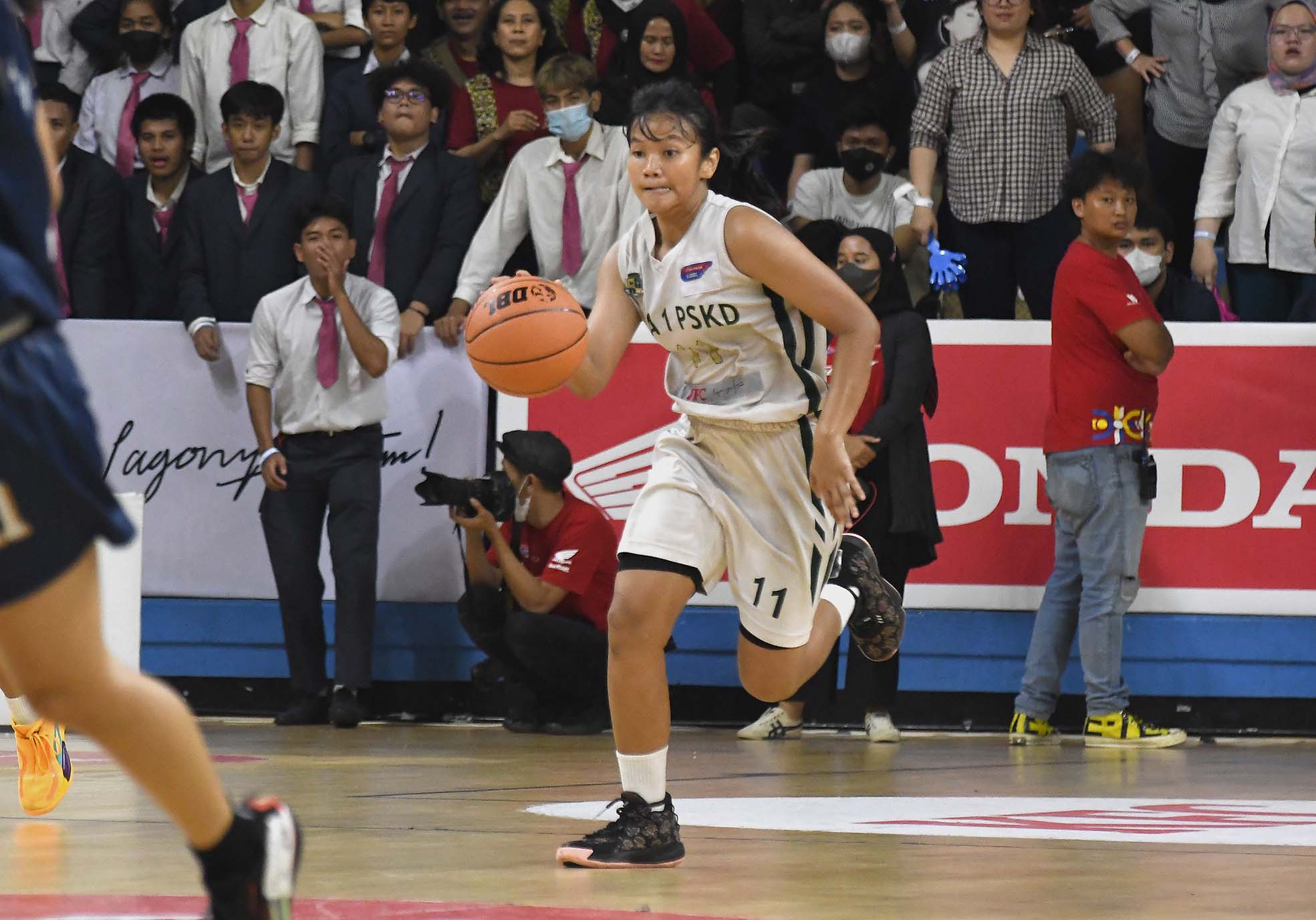 Kirana Anggun Octovia (11) pemain basket Putri SMA 1 PSKD Jakarta dalam aksinya di Honda DBL with KFC 2022 DKI Jakarta Championship Series yang berlangsung di Pasar Festival / Gelanggang Mahasiswa Soemantri Brojonegoro Jakarta, pada Rabu, 16 November 2022 saat melawan SMA 70 Jakarta.