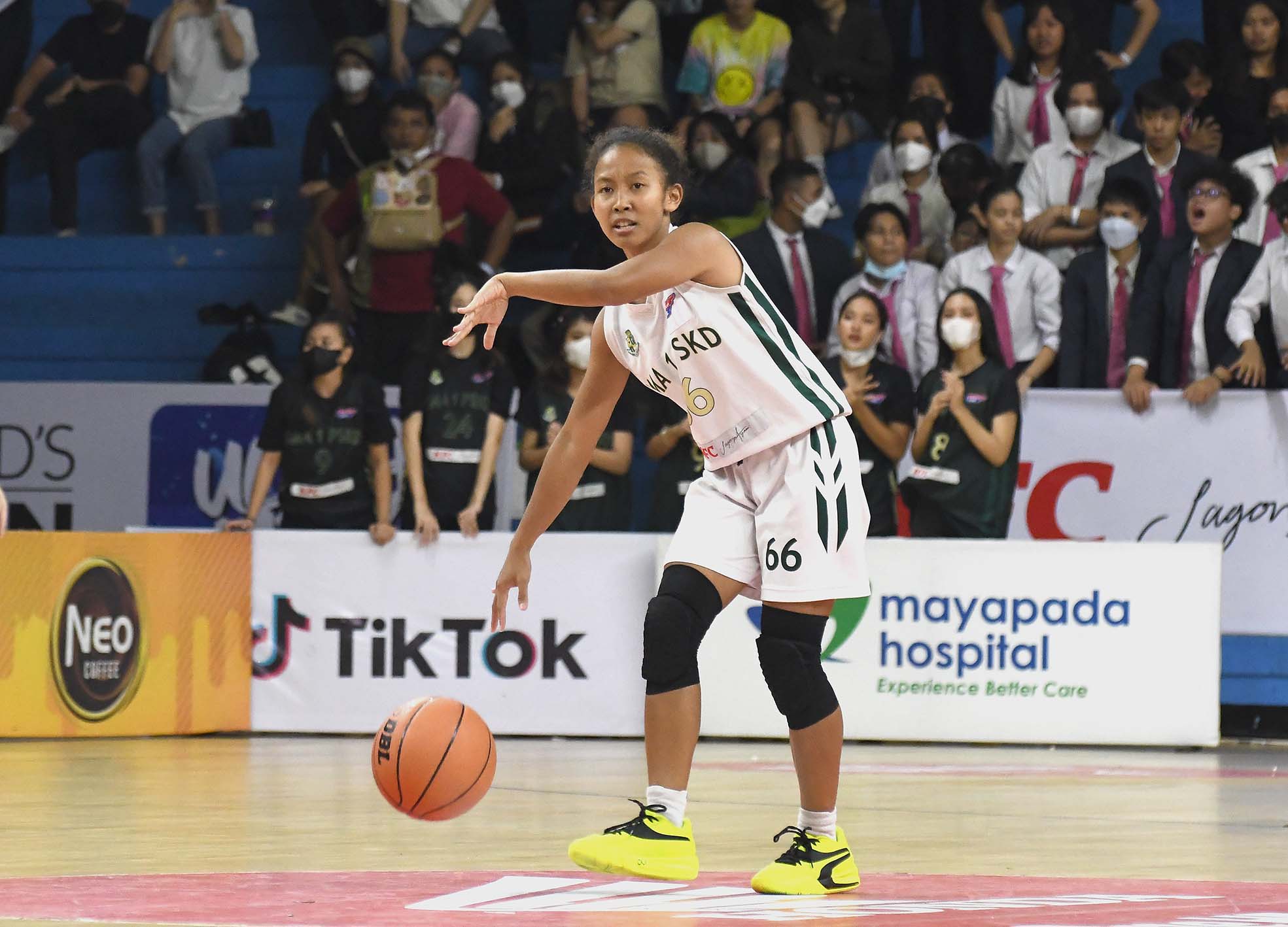 Harva Roshy Wahani (66) pemain basket Putri SMA 1 PSKD Jakarta dalam aksinya di Honda DBL with KFC 2022 DKI Jakarta Championship Series yang berlangsung di Pasar Festival / Gelanggang Mahasiswa Soemantri Brojonegoro Jakarta, pada Rabu, 16 November 2022 saat melawan SMA 70 Jakarta. SMA 70 Jakarta berhasil mengalahkan SMA 1 PSKD Jakarta dengan skor 47-40. (Photo: Sportsmoment.id/Hadi Saputra)