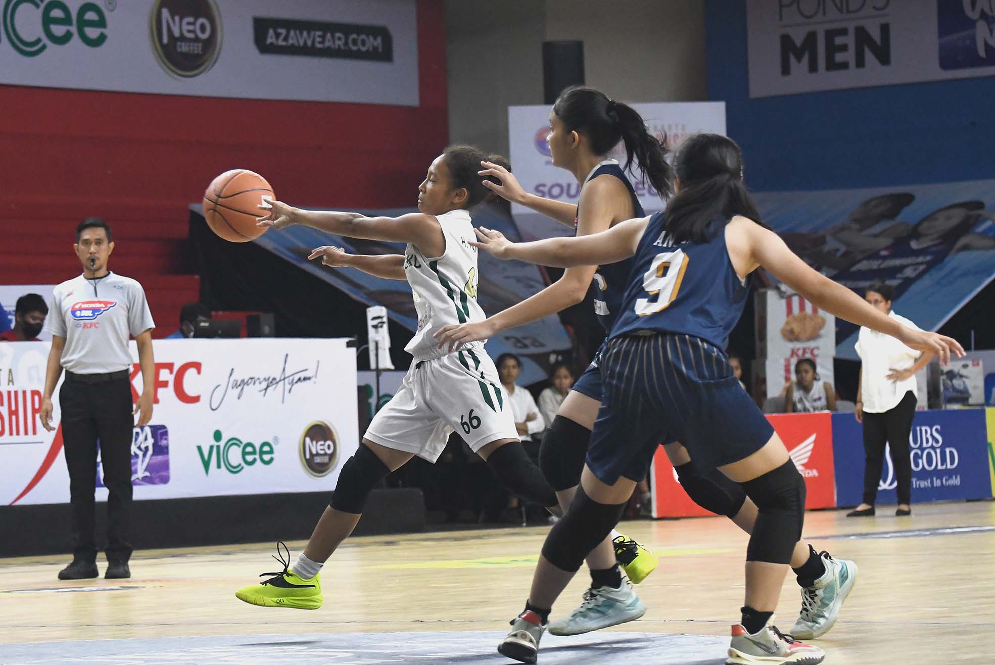 Harva Roshy Wahani (66) pemain basket Putri SMA 1 PSKD Jakarta dalam aksinya di Honda DBL with KFC 2022 DKI Jakarta Championship Series yang berlangsung di Pasar Festival / Gelanggang Mahasiswa Soemantri Brojonegoro Jakarta, pada Rabu, 16 November 2022 saat melawan SMA 70 Jakarta. SMA 70 Jakarta berhasil mengalahkan SMA 1 PSKD Jakarta dengan skor 47-40. (Photo: Sportsmoment.id/Hadi Saputra)