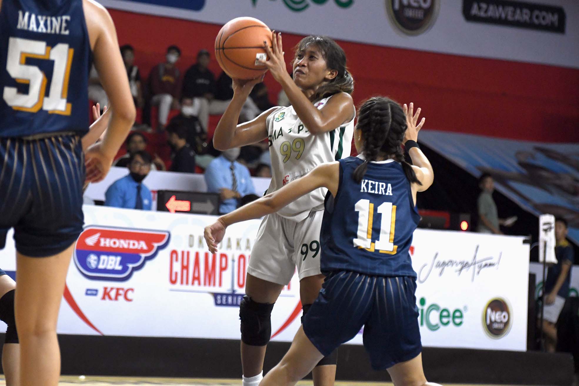 Raynanda Feronicha Ester Oktaberynda ( 99 ) pemain basket Putri SMA 1 PSKD Jakarta dalam aksinya di Honda DBL with KFC 2022 DKI Jakarta Championship Series yang berlangsung di Pasar Festival / Gelanggang Mahasiswa Soemantri Brojonegoro Jakarta, pada Rabu, 16 November 2022 saat melawan SMA 70 Jakarta. SMA 70 Jakarta berhasil mengalahkan SMA 1 PSKD Jakarta dengan skor 47-40. (Photo: Sportsmoment.id/Hadi Saputra)
