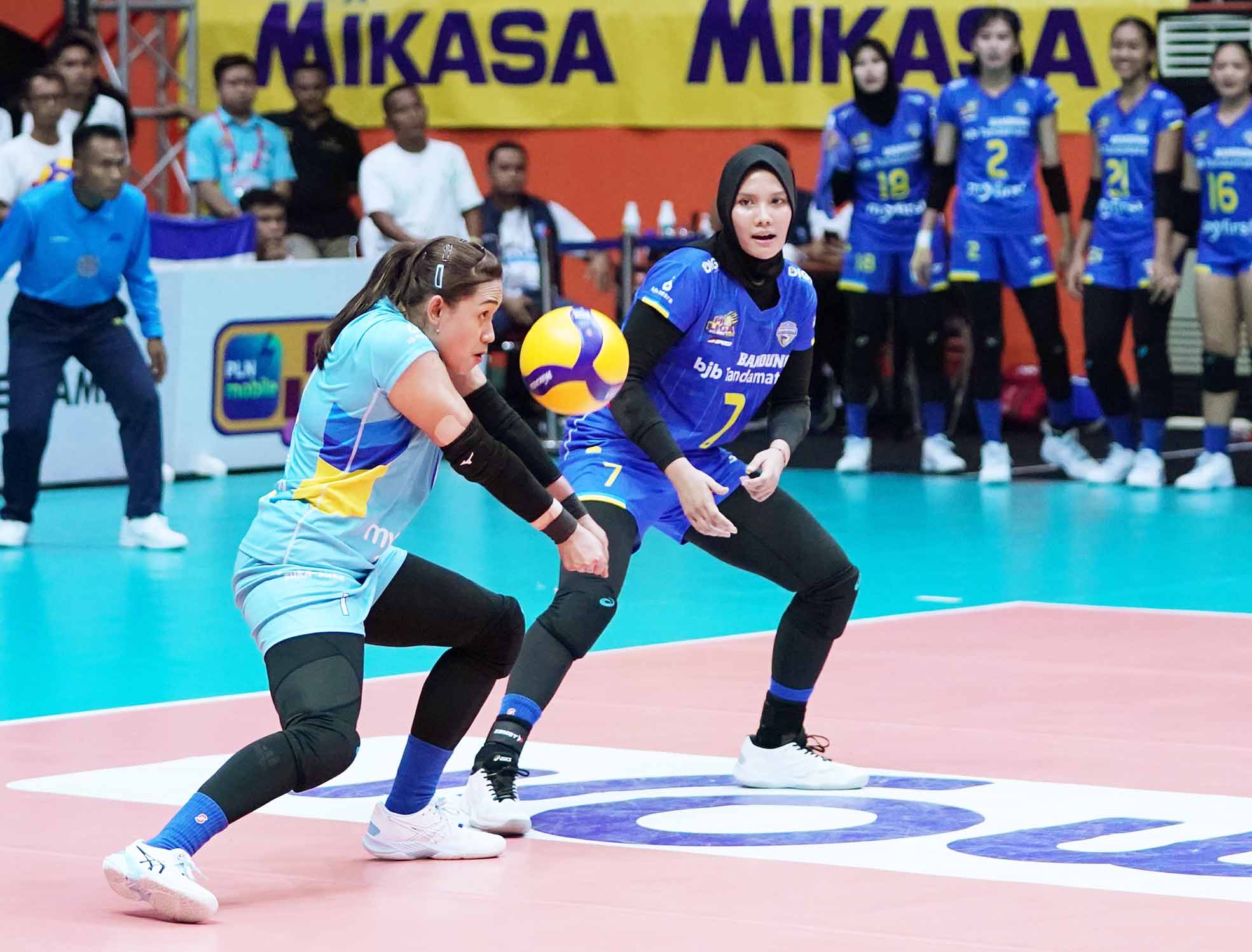 JAKARTA PERTAMINA FASTRON (Putih) mengalahkan BANDUNG BJB TANDAMATA (Biru) dengan skor 3-1 (23-25, 26-24, 25-25, 25-20)