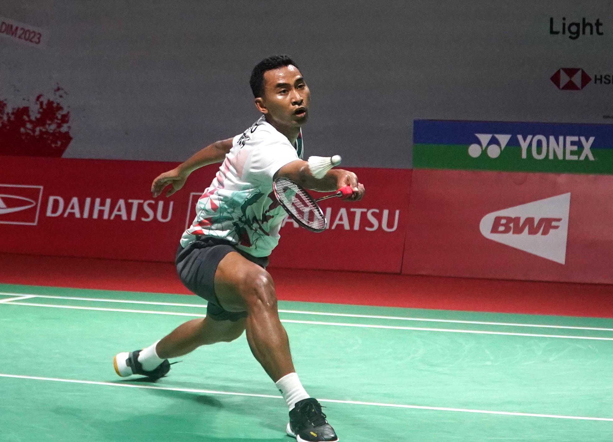 Tunggal putra Indonesia, Tommy Sugiarto dikalahkan tunggal putra Denmark, Victor Svendsen melalui pertarungan tiga gim, 21-12, 16-21 dan 19-21 pada babak pertama kualifikasi gelaran Daihatsu Indonesia Masters 2023, Selasa (24/1), di Istora Senayan Jakarta. (Foto : HO/Humas PP PBSI/Erly Bahtiar/Sportsmoment)