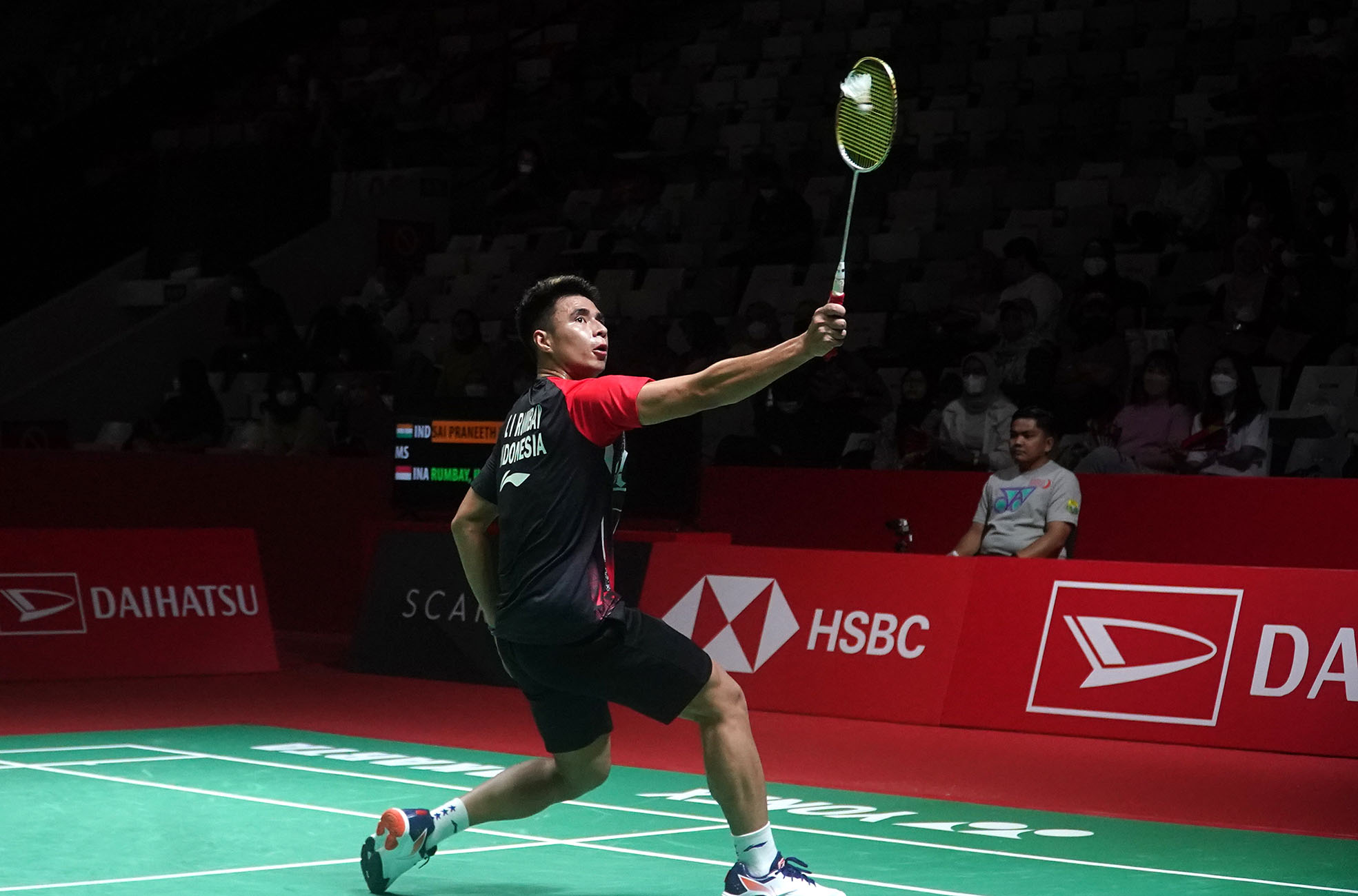 Tunggal putra Indonesia, Ikhsan Leonardo Imanuel Rumbay dikalahkan tunggal putra India, Sai Praneeth melalui pertarungan tiga gim, 18-21, 21-9 dan 15-21 pada babak pertama kualifikasi gelaran Daihatsu Indonesia Masters 2023, Selasa (24/1), di Istora Senayan Jakarta. (Foto : HO/Humas PP PBSI/Erly Bahtiar/Sportsmoment)
