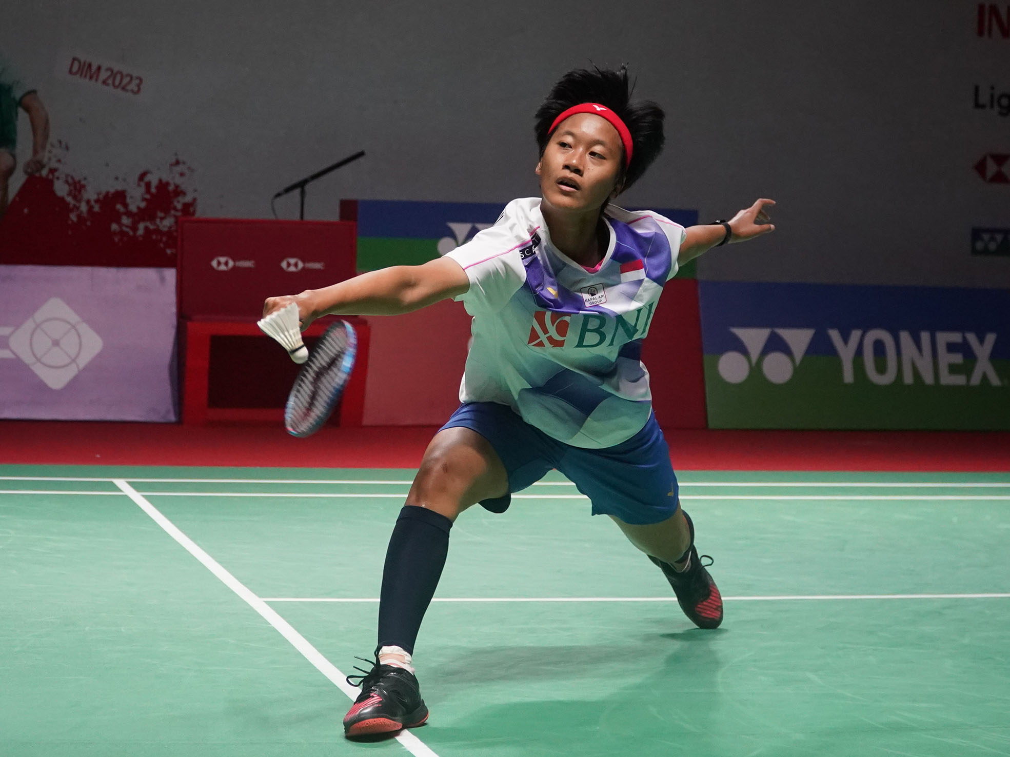 Tunggal putri Indonesia, Putri Kusuma Wardani berhasil mengalahkan tunggal putri Belgia, Lianne Tan dua gim langsung, 21-12 dan 21-17 pada babak kualifikasi gelaran Daihatsu Indonesia Masters 2023, Selasa (24/1), di Istora Senayan Jakarta. (Foto : HO/Humas PP PBSI/Erly Bahtiar/Sportsmoment)