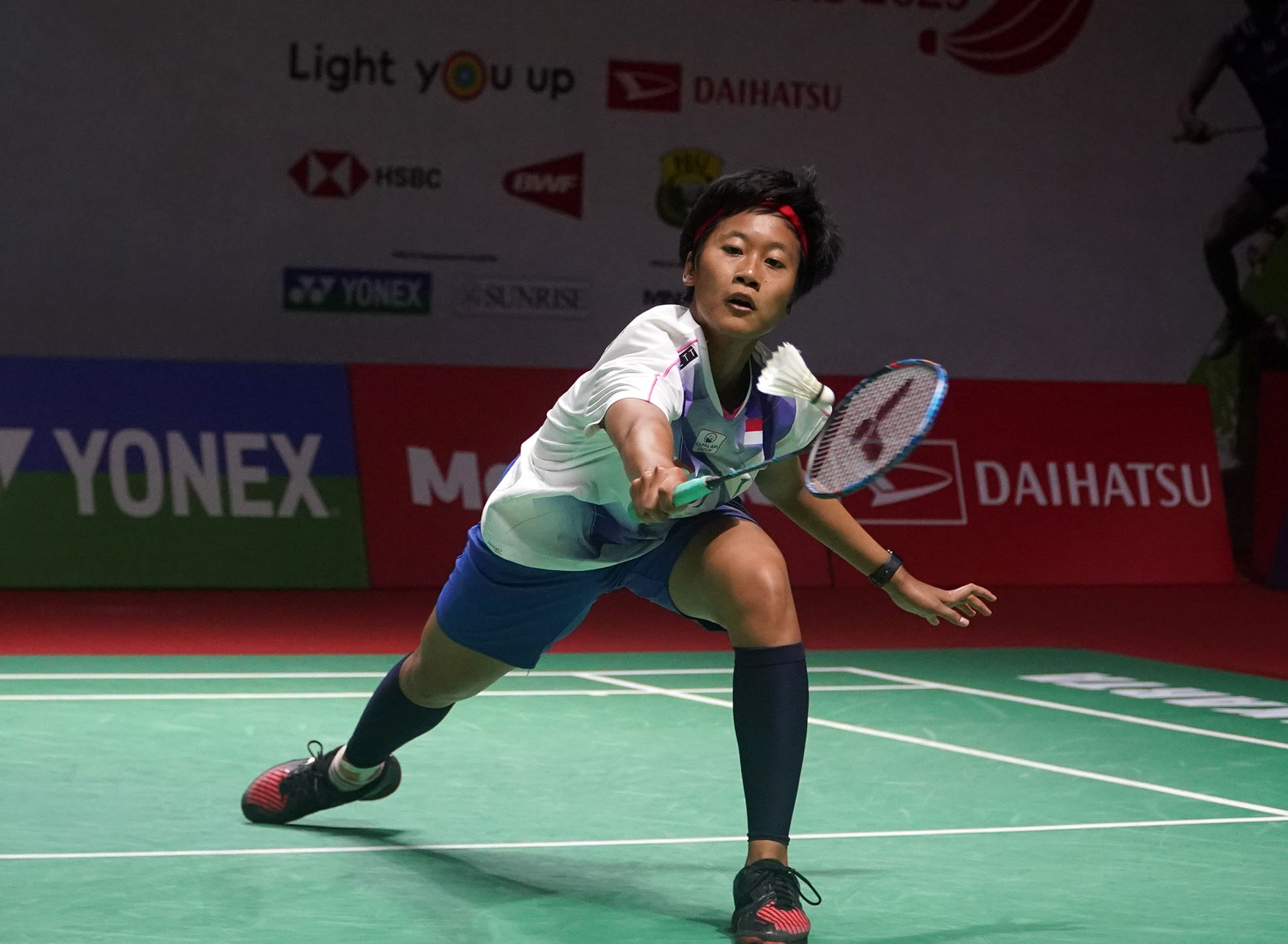 Tunggal putri Indonesia, Putri Kusuma Wardani berhasil mengalahkan tunggal putri Belgia, Lianne Tan dua gim langsung, 21-12 dan 21-17 pada babak kualifikasi gelaran Daihatsu Indonesia Masters 2023, Selasa (24/1), di Istora Senayan Jakarta. (Foto : HO/Humas PP PBSI/Erly Bahtiar/Sportsmoment)