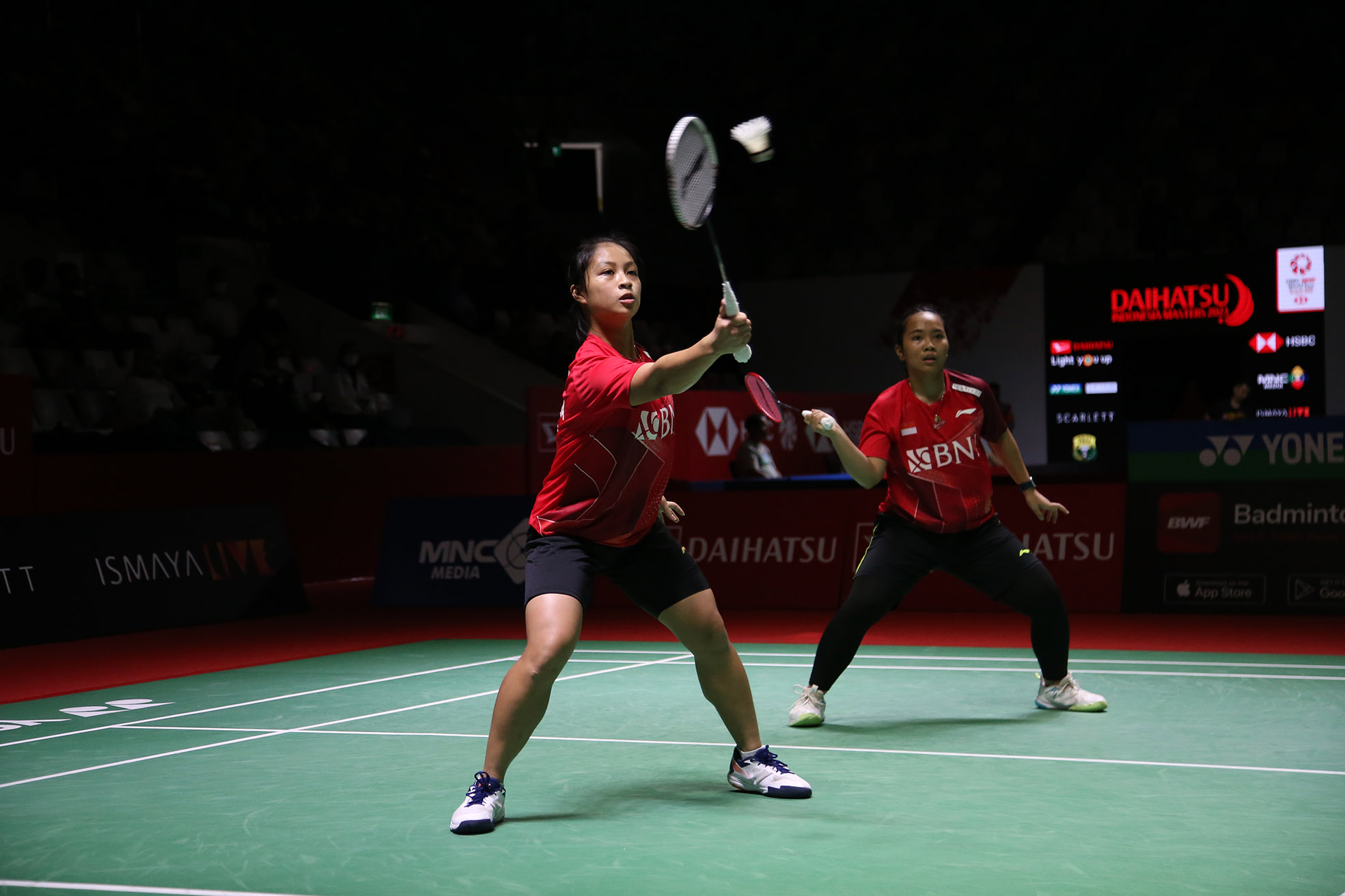 Ganda putri Indonesia, Anisanaya Kamila/Az Zahra Ditya Ramadhani dikalahkan ganda putri Chinese Taipei, Hu Ling Fang/Lin Xiao Min dua gim langsung, 11-21 dan 9-21 pada babak kualifikasi gelaran Daihatsu Indonesia Masters 2023, Selasa (24/1), di Istora Senayan Jakarta. (Foto : HO/Humas PP PBSI/Erly Bahtiar/Sportsmoment)