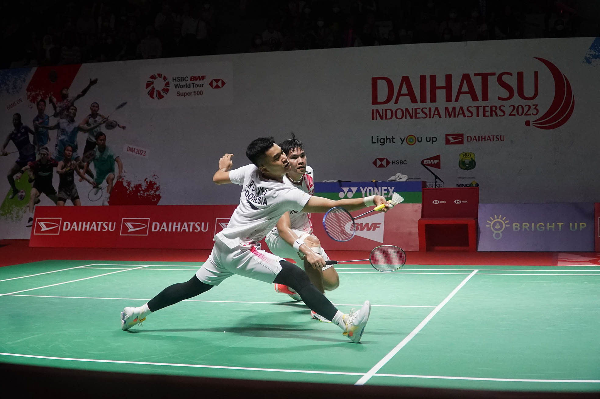Ganda putra Indonesia, Leo Rolly Carnando/Daniel Marthin berhasil mengalahkan ganda putra Korea Selatan, Ko Sung Hyun/Shin Baek Cheol dua gim langsung, 21-11 dan 21-16 pada babak pertama gelaran Daihatsu Indonesia Masters 2023, Selasa (24/1), di Istora Senayan Jakarta. (Foto : HO/Humas PP PBSI/Erly Bahtiar/Sportsmoment)