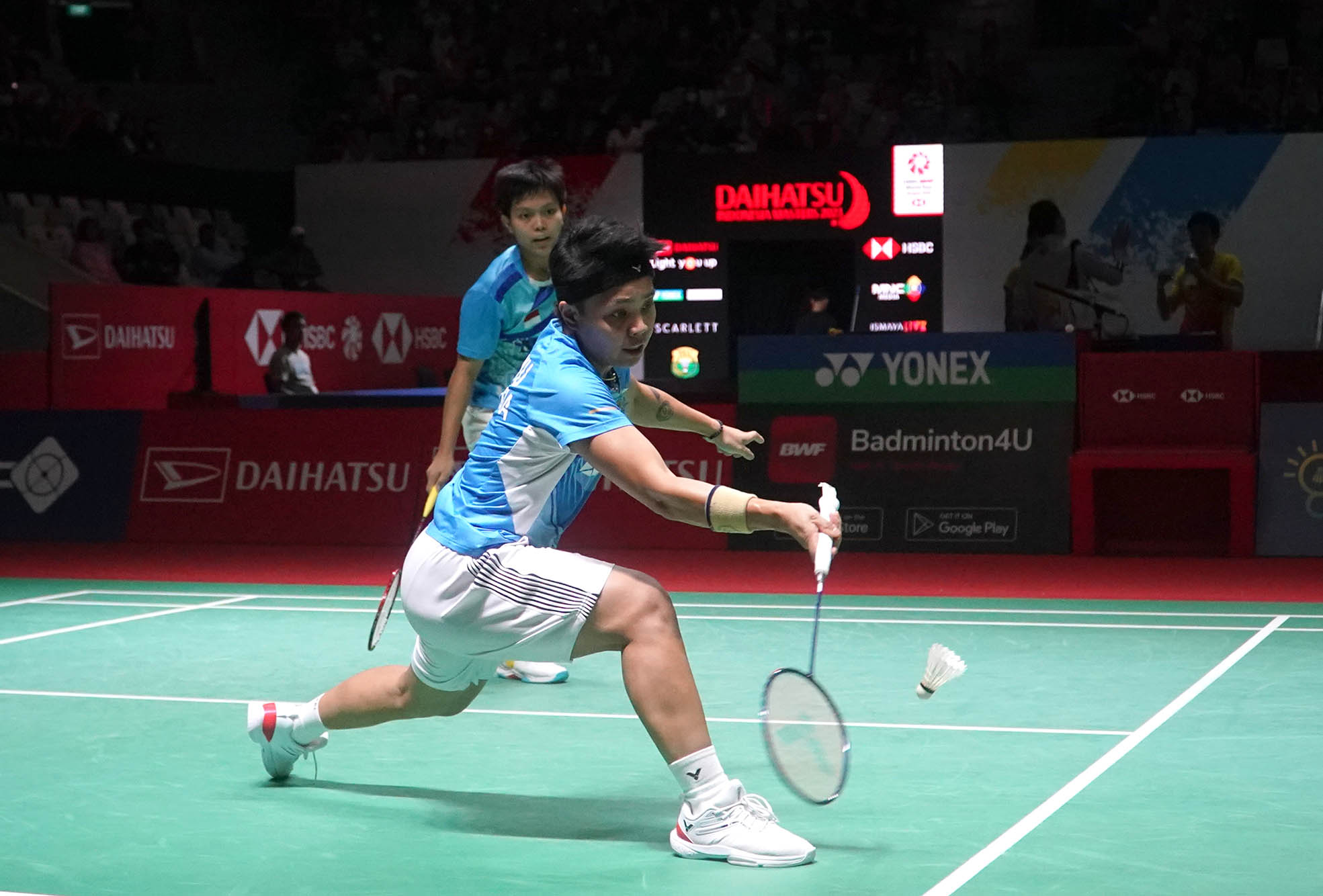 Ganda putri Indonesia, Apriyani Rahayu/Siti Fadia Silva Ramadhanti berhasil mengalahkan ganda putri Chinese Taipei, Chang Ching Hui/Yang Ching Tun dua gim langsung, 21-14 dan 21-9 pada babak pertama gelaran Daihatsu Indonesia Masters 2023, Rabu (25/1), di Istora Senayan Jakarta. (Foto : HO/Humas PP PBSI/Erly Bahtiar/Sportsmoment)