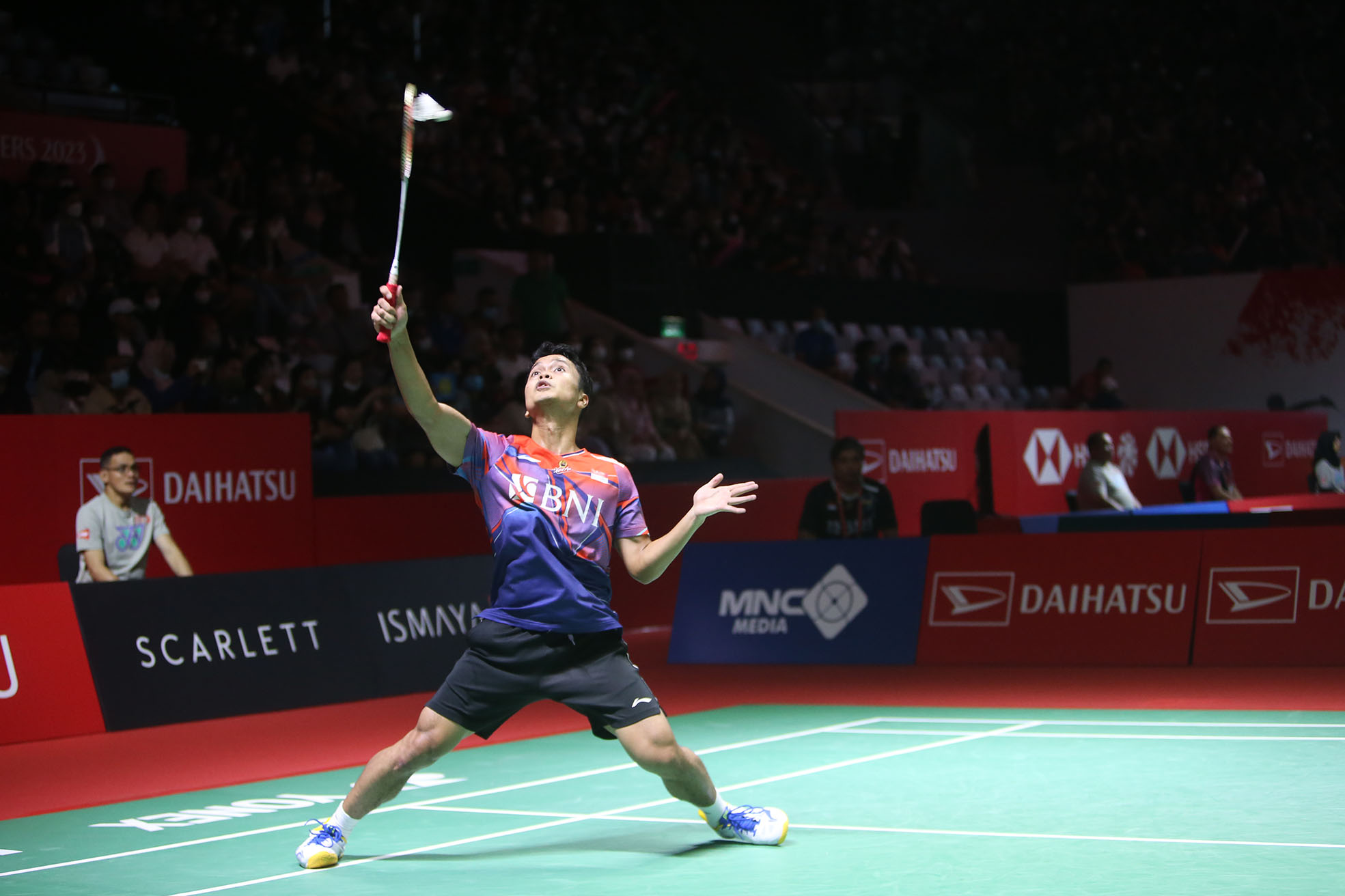 Tunggal putra Indonesia, Anthony Sinisuka Ginting dikalahkan tunggal putra Tiongkok, Shi Yu Qi dua gim langsung, 19-21 dan 16-21 pada babak kedua gelaran Daihatsu Indonesia Masters 2023, Kamis (26/1), di Istora Senayan Jakarta. (Foto : HO/Humas PP PBSI/Erly Bahtiar/Sportsmoment)