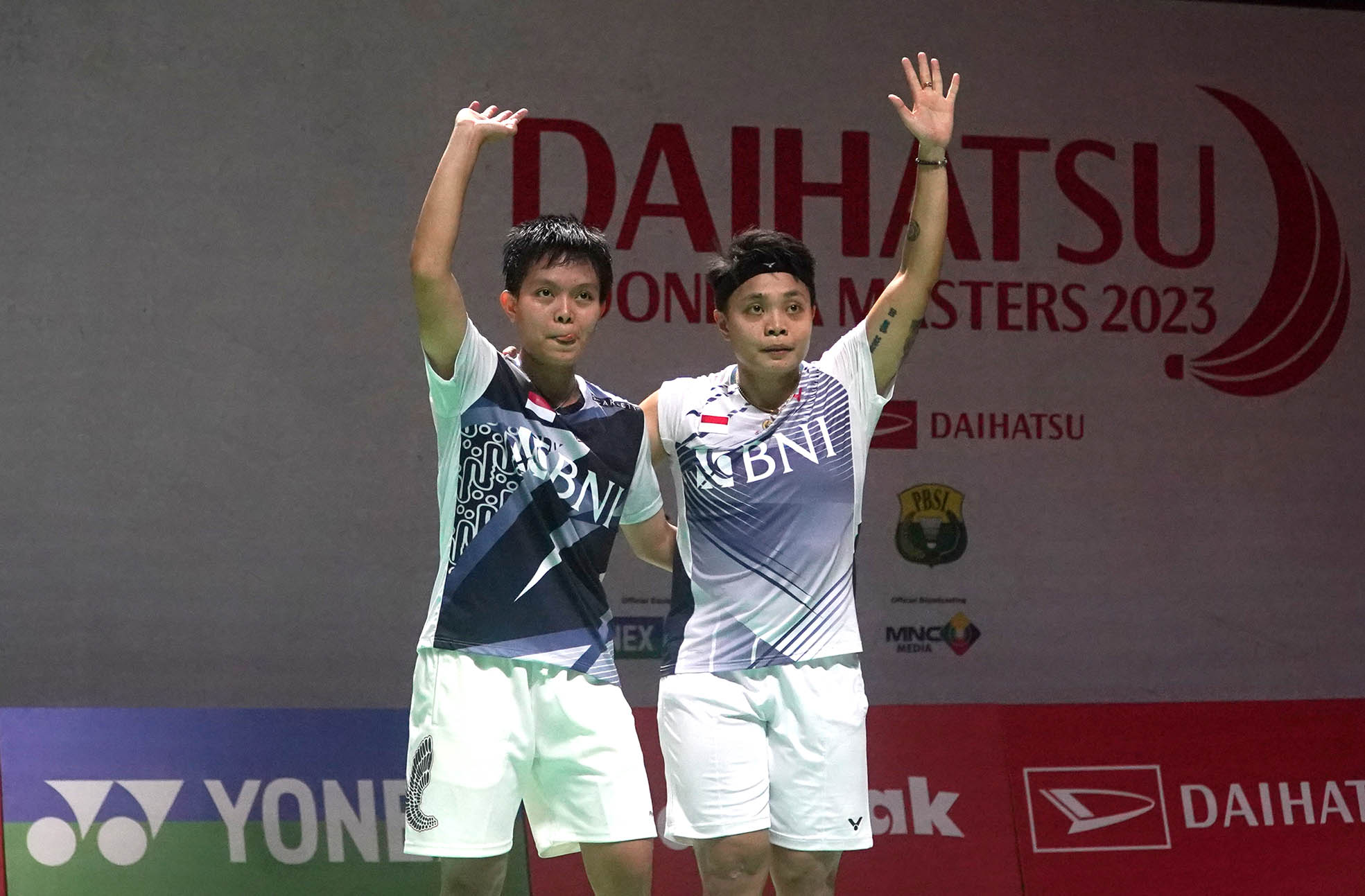 Ganda putri Indonesia, Apriyani Rahayu/Siti Fadia Silva Ramadhanti berhasil mengalahkan ganda putri Chinese Taipei, Hu Ling Fang/Lin Xiao Min dua gim langsung, 22-20 dan 21-16 pada babak kedua gelaran Daihatsu Indonesia Masters 2023, Kamis (26/1), di Istora Senayan Jakarta. (Foto : HO/Humas PP PBSI/Erly Bahtiar/Sportsmoment)