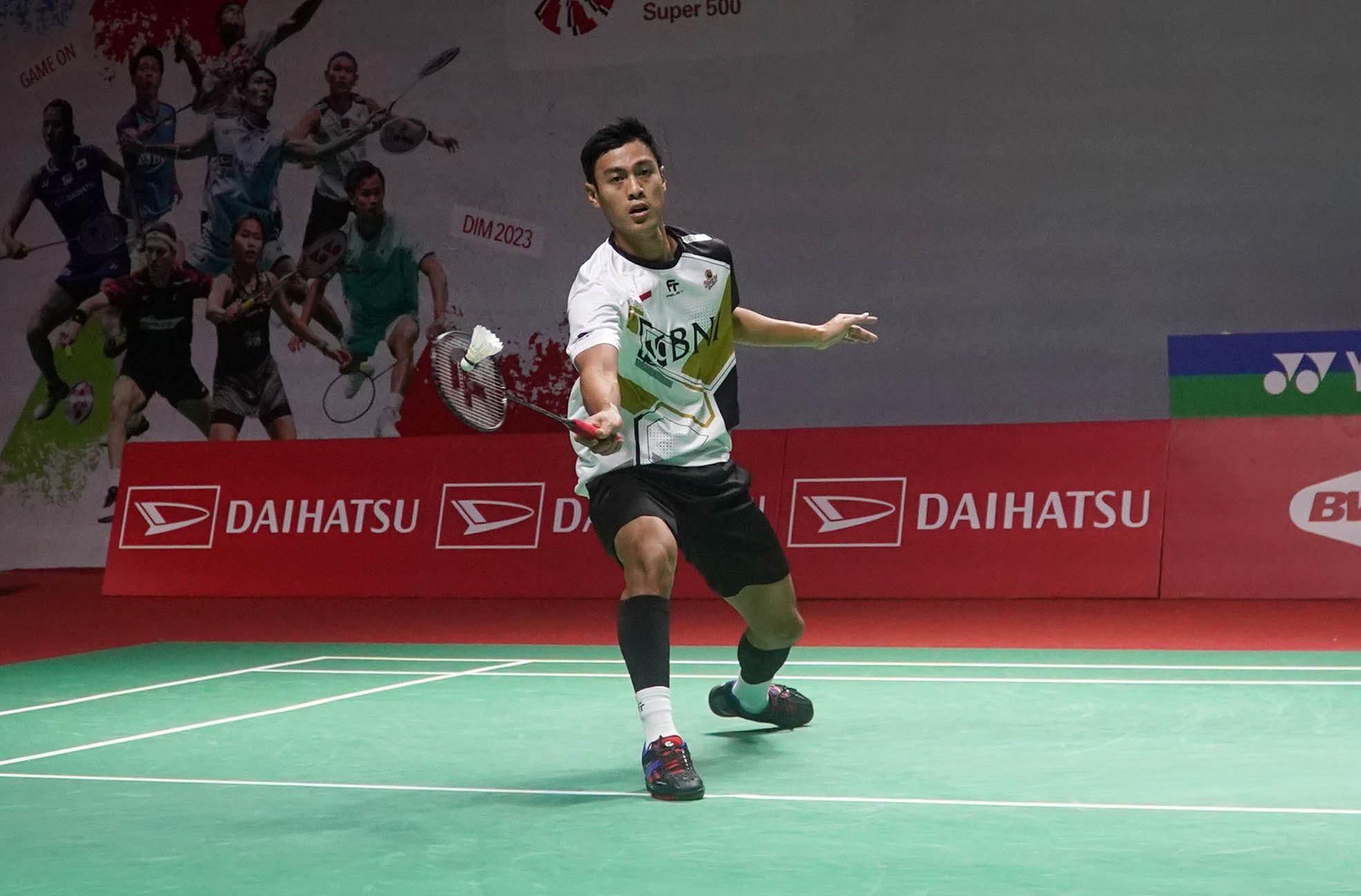 Tunggal putra Indonesia, Shesar Hiren Rhustavito dikalahkan kompatriotnya, Jonatan Christie dua gim langsung, 16-21 dan 15-21 pada babak kedua gelaran Daihatsu Indonesia Masters 2023, Kamis (26/1), di Istora Senayan Jakarta. (Foto : HO/Humas PP PBSI/Erly Bahtiar/Sportsmoment)