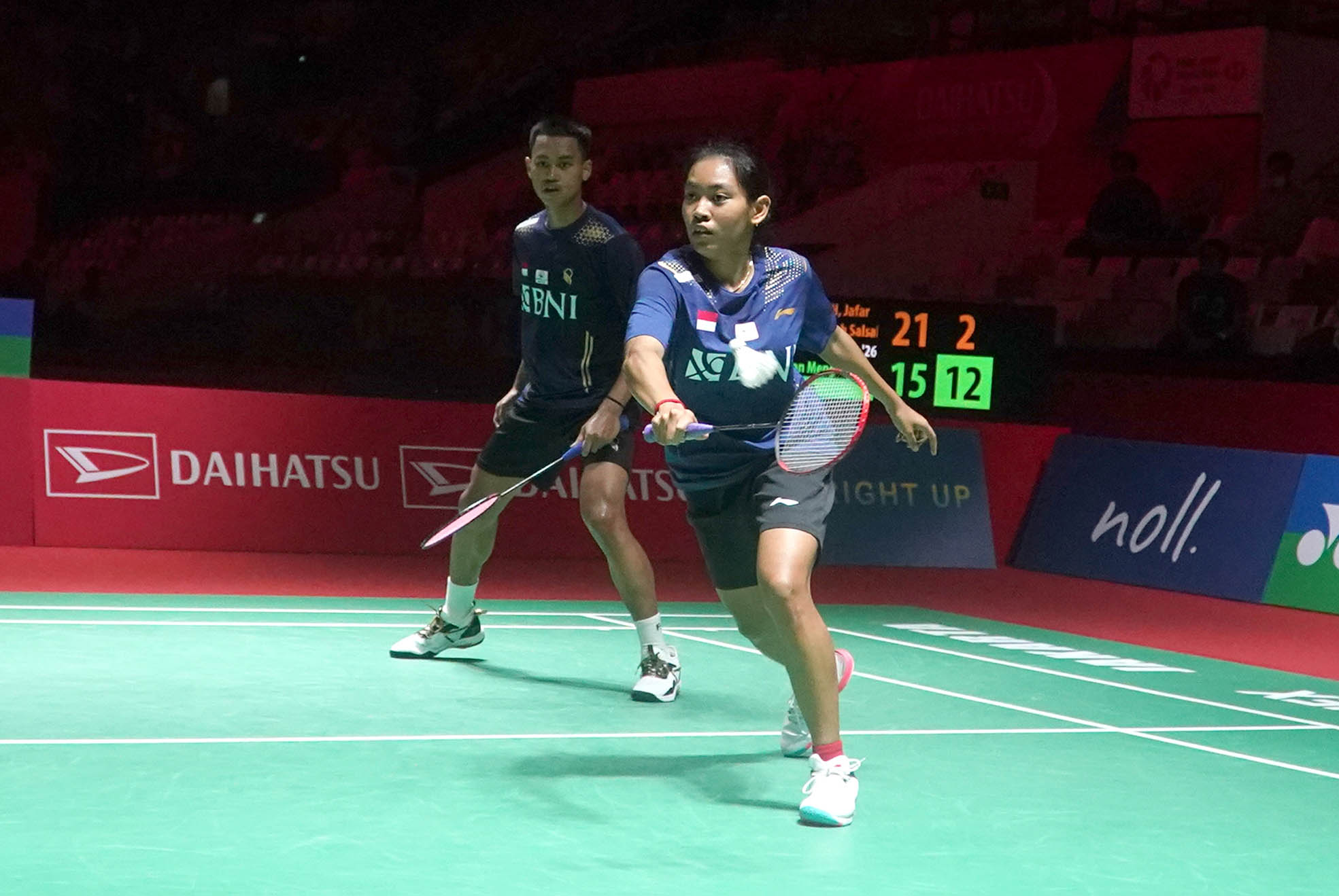 Ganda campuran Indonesia, Jafar Hidayatullah/Aisyah Salsabila Putri Pranata berhasil mengalahkan ganda campuran Malaysia, Tan Kian Meng/Lai Pei Jing melalui pertarungan tiga gim 21-15, 7-21 dan 21-14 pada babak kedua gelaran Daihatsu Indonesia Masters 2023, Kamis (26/1), di Istora Senayan Jakarta. (Foto : HO/Humas PP PBSI/Erly Bahtiar/Sportsmoment)