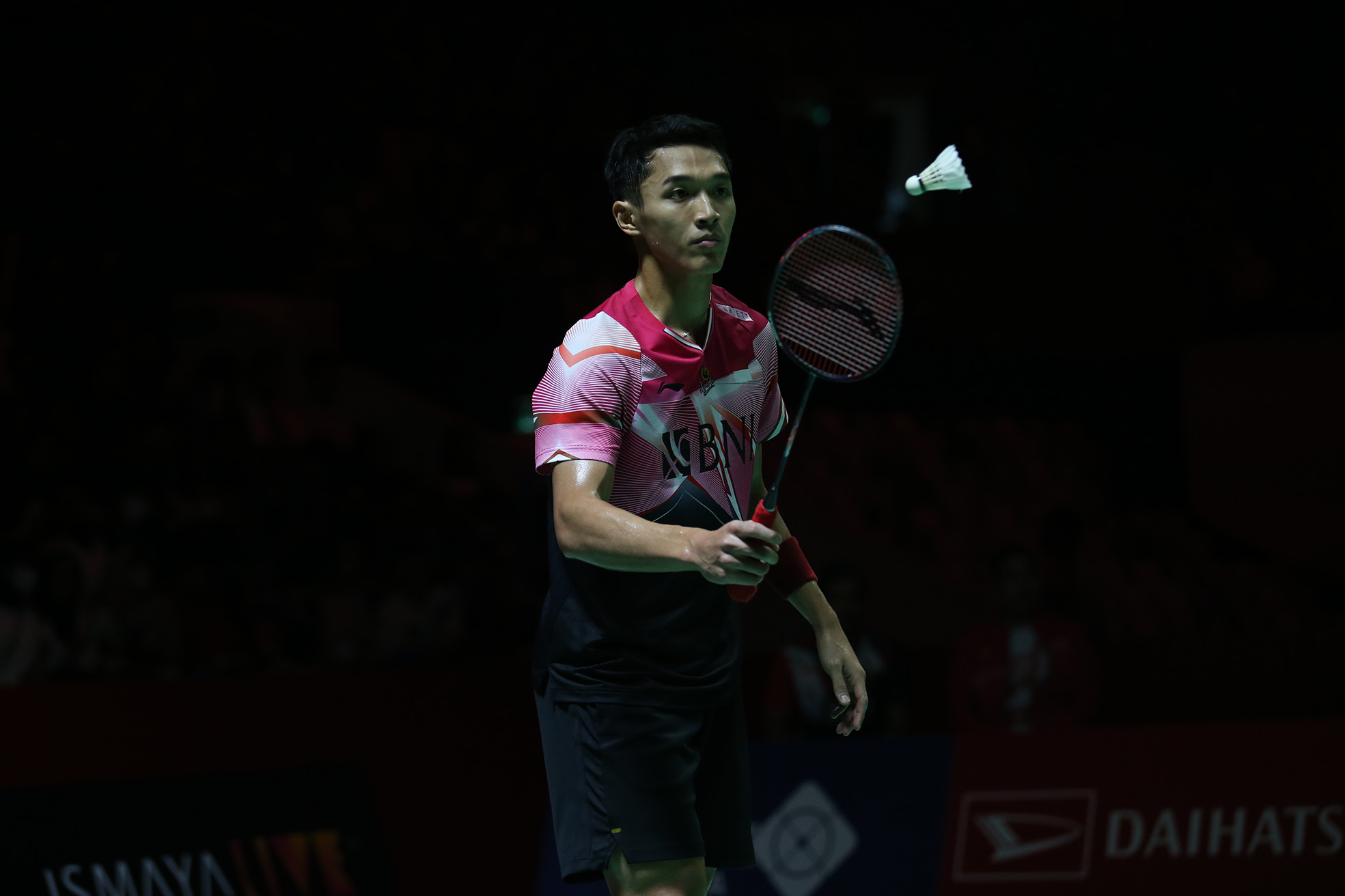 Tunggal putra Indonesia, Jonatan Christie berhasil mengalahkan tunggal putra Tiongkok, Shi Yu Qi melalui pertarungan tiga gim, 21-13, 15-21 dan 21-19 pada babak semifinal gelaran Daihatsu Indonesia Masters 2023, Sabtu (28/1), di Istora Senayan Jakarta. (Foto : HO/Humas PP PBSI/Erly Bahtiar/Sportsmoment)
