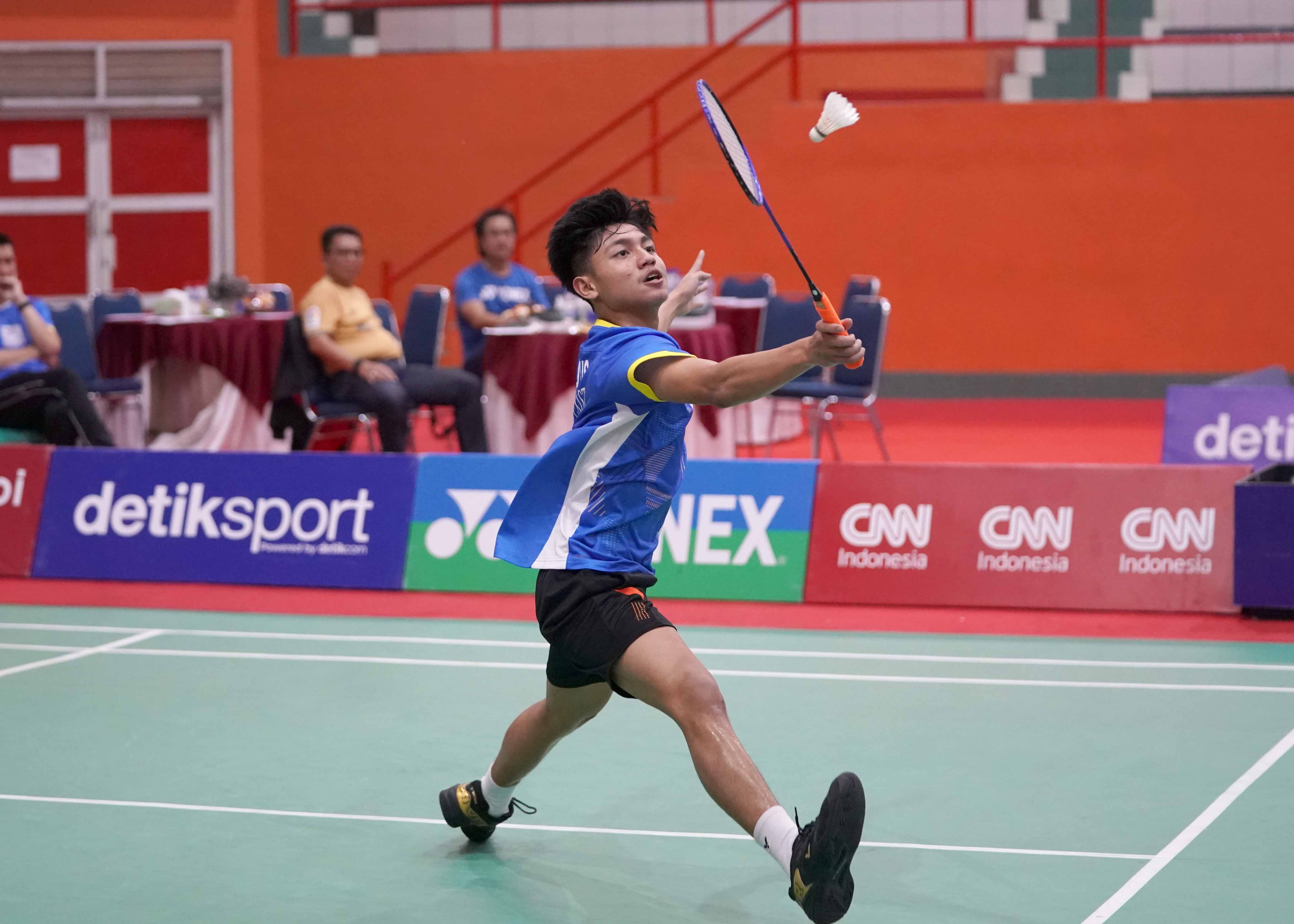 Tunggal taruna putra asal klub PB. Mansion Exist, Jaden Abdullah Usman Putra Ayus berhasil menjadi juara setelah mengalahkan tunggal taruna putra asal PB. Djarum Kudus, Hendry Leander melalui pertarungan tiga gim, 12-21, 22-20 dan 21-14 pada partai final gelaran Sirkuit Nasional Jawa Tengah yang diselenggarakan di GOR Satria, Purwokerto, Sabtu (11/3). (Foto by : sportsmoment.id)
