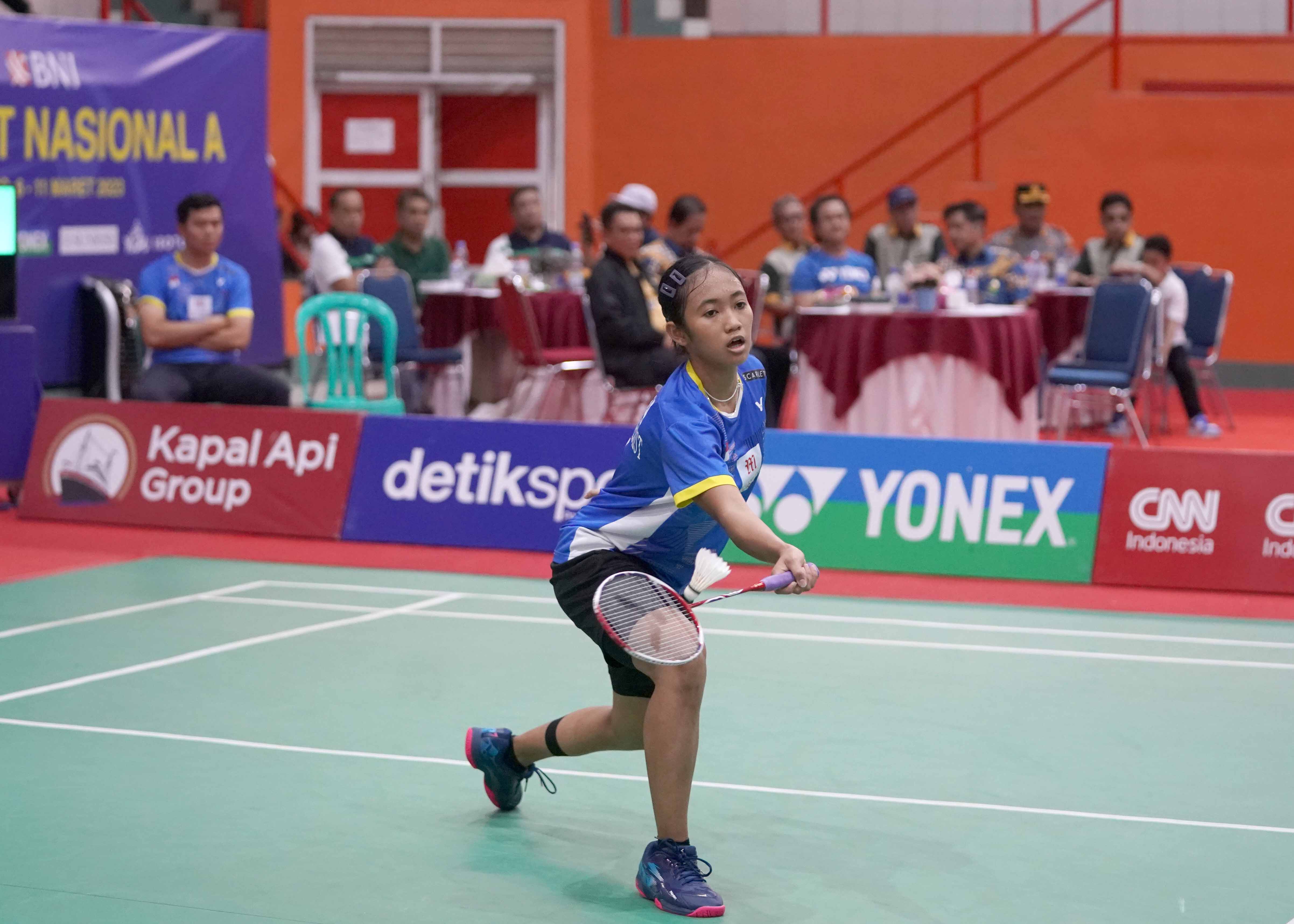 Tunggal remaja putri asal klub PB. Mansion Exist, Kavitha Nadjwa Aulia dikalahkan tunggal remaja putri asal klub PB. Djarum Kudus, Jolin Angelia melalui pertarungan tiga gim, 21-13, 16-21 dan 15-21 pada partai final gelaran Sirkuit Nasional Jawa Tengah yang diselenggarakan di GOR Satria, Purwokerto, Sabtu (11/3). (Foto by : sportsmoment.id)