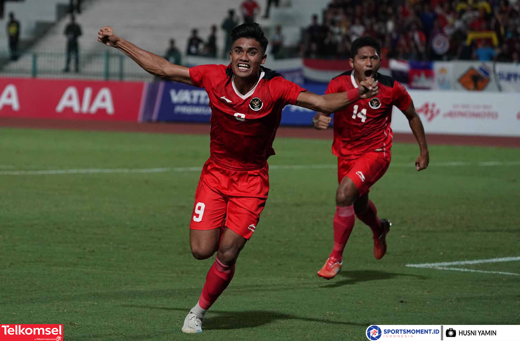 Pesepakbola Indonesia, M Ramadhan Sananta berhasil mencetak dua gol ke gawang Thailand pada gelaran SEA Games 2023 Kamboja di Olympic Stadium, Phnom Penh, Selasa (16/5/2023). Indonesia meraih medali Emas setelah mengalahkan Thailand 5-2. (Foto: sportsmoment.id/Husni Yamin).