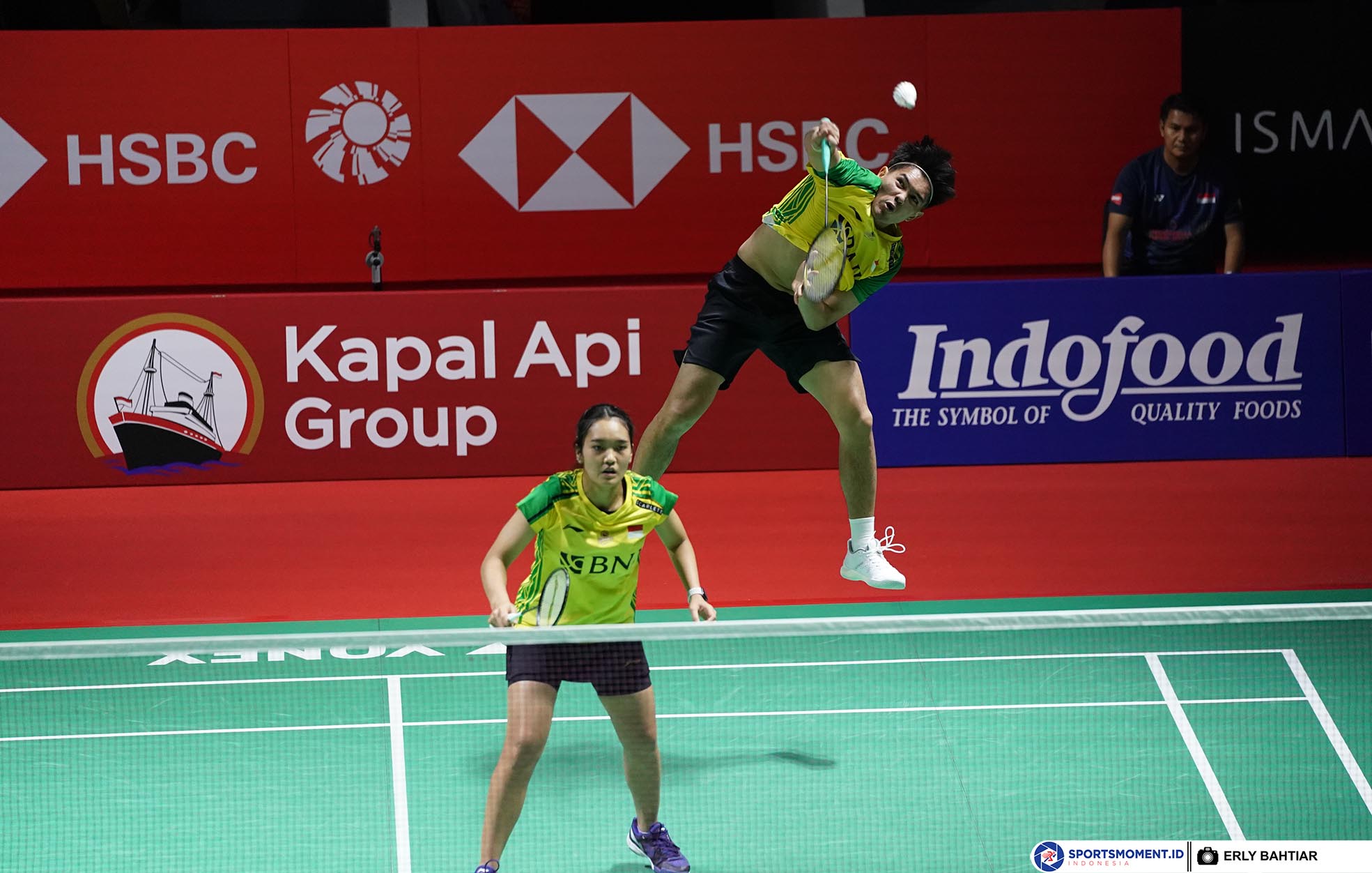 Ganda campuran Indonesia, Adnan Maulana/Nita Violina Marwah dikalahkan unggulan satu asal Tiongkok, Zheng Si Wei/Huang Ya Qiong dua gim langsung, 15-21, 9-21 pada babak pertama gelaran Kapal Api Group Indonesia Open 2023 di Istora Senayan Jakarta, Selasa (13/6). ( Foto : HO/Humas PP PBSI/Erly Bahtiar/Sportsmoment )