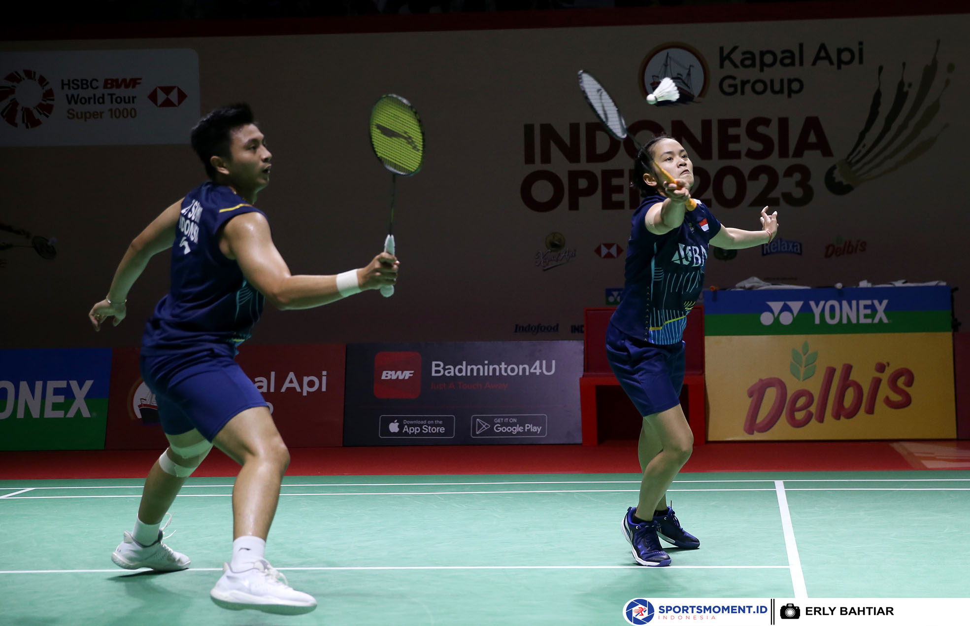 Ganda campuran Indonesia, Zachariah Josiahno Sumanti/Hediana Julimarbela dikalahkan unggulan ketiga asal Thailand, Dechapol Puavaranukroh/Sapsiree Taerattanachai dua gim langsung, 17-21, 9-21 pada babak pertama gelaran Kapal Api Group Indonesia Open 2023 di Istora Senayan Jakarta, Selasa (13/6). ( Foto : HO/Humas PP PBSI/Erly Bahtiar/Sportsmoment )