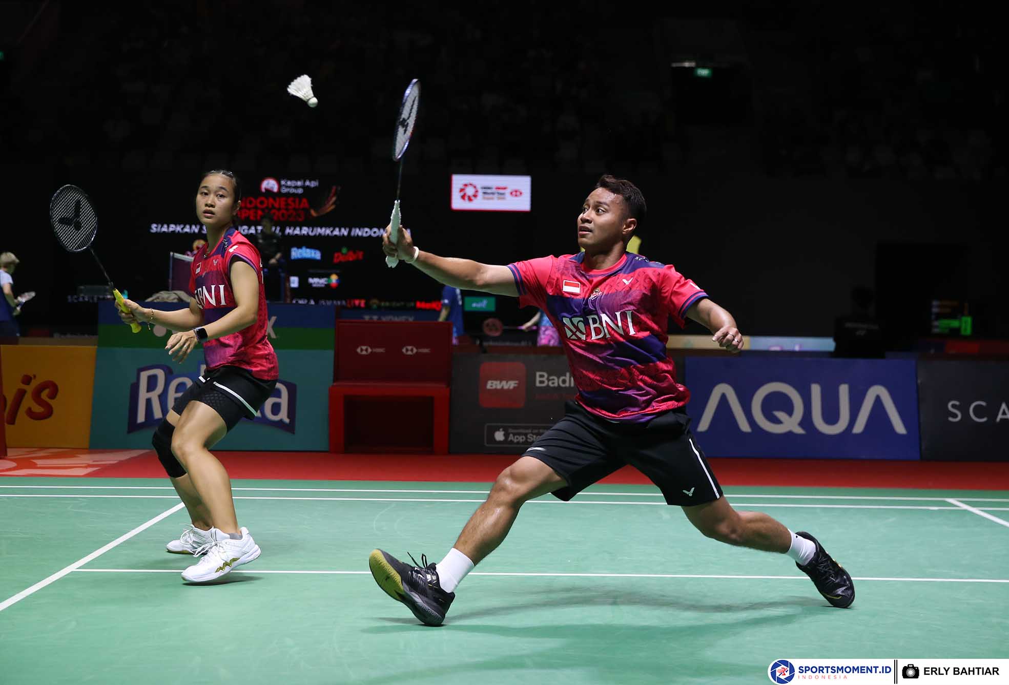 Ganda campuran Indonesia, Rehan Naufal Kusharjanto/Lisa Ayu Kusumawati berhasil mengalahkan unggulan ketujuh asal Malaysia, Goh Soon Huat/Lai Shevon Jemie melalui pertarungan tiga gim, 13-21, 26-24, 21-17 pada babak pertama gelaran Kapal Api Group Indonesia Open 2023 di Istora Senayan Jakarta, Selasa (13/6). ( Foto : HO/Humas PP PBSI/Erly Bahtiar/Sportsmoment )