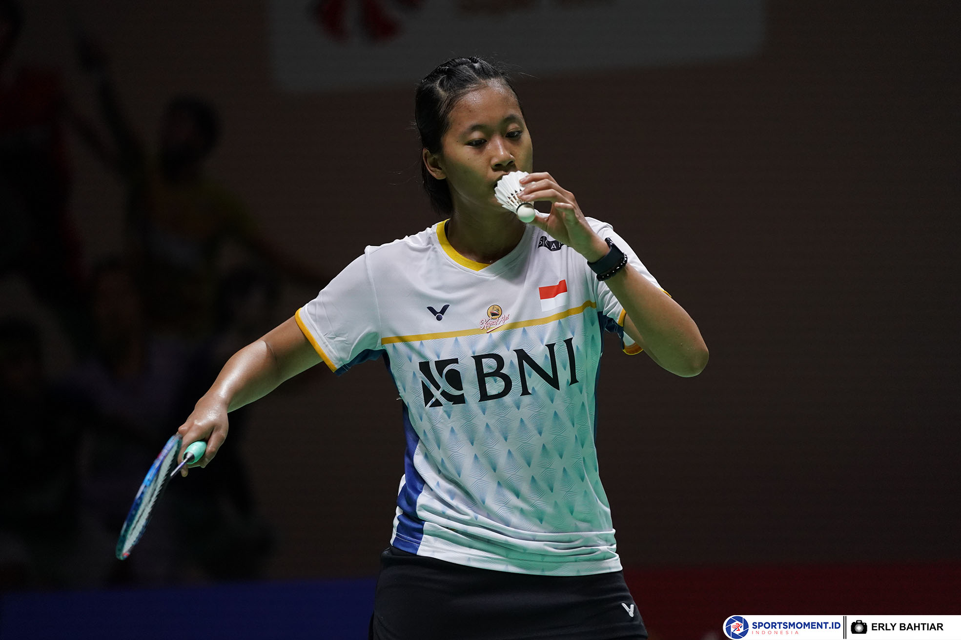 Tunggal putri Indonesia, Putri Kusuma Wardani berhasil mengalahkan tunggal putri Amerika Serikat, Iris Wang melalui pertarungan tiga gim, 15-21, 22-20, 23-21 pada babak pertama gelaran Kapal Api Group Indonesia Open 2023 di Istora Senayan Jakarta, Selasa (13/6). ( Foto : HO/Humas PP PBSI/Erly Bahtiar/Sportsmoment )