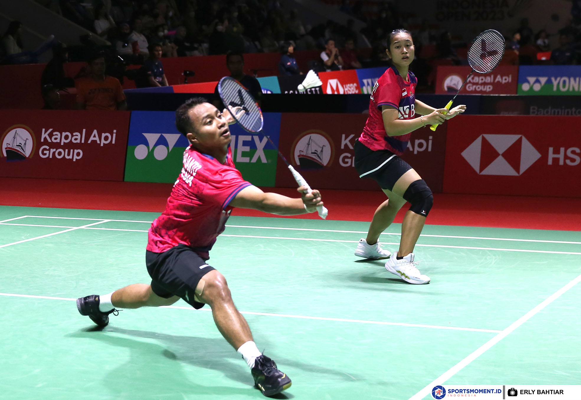 Ganda campuran Indonesia, Rehan Naufal Kusharjanto/Lisa Ayu Kusumawati dikalahkan ganda campuran asal Denmark, Mathias Thyrri/Amalie Magelund dua gim langsung, 14-21 16-21 pada babak kedua gelaran Kapal Api Group Indonesia Open 2023 di Istora Senayan Jakarta, Kamis (15/6). ( Foto : HO/Humas PP PBSI/Erly Bahtiar/Sportsmoment )