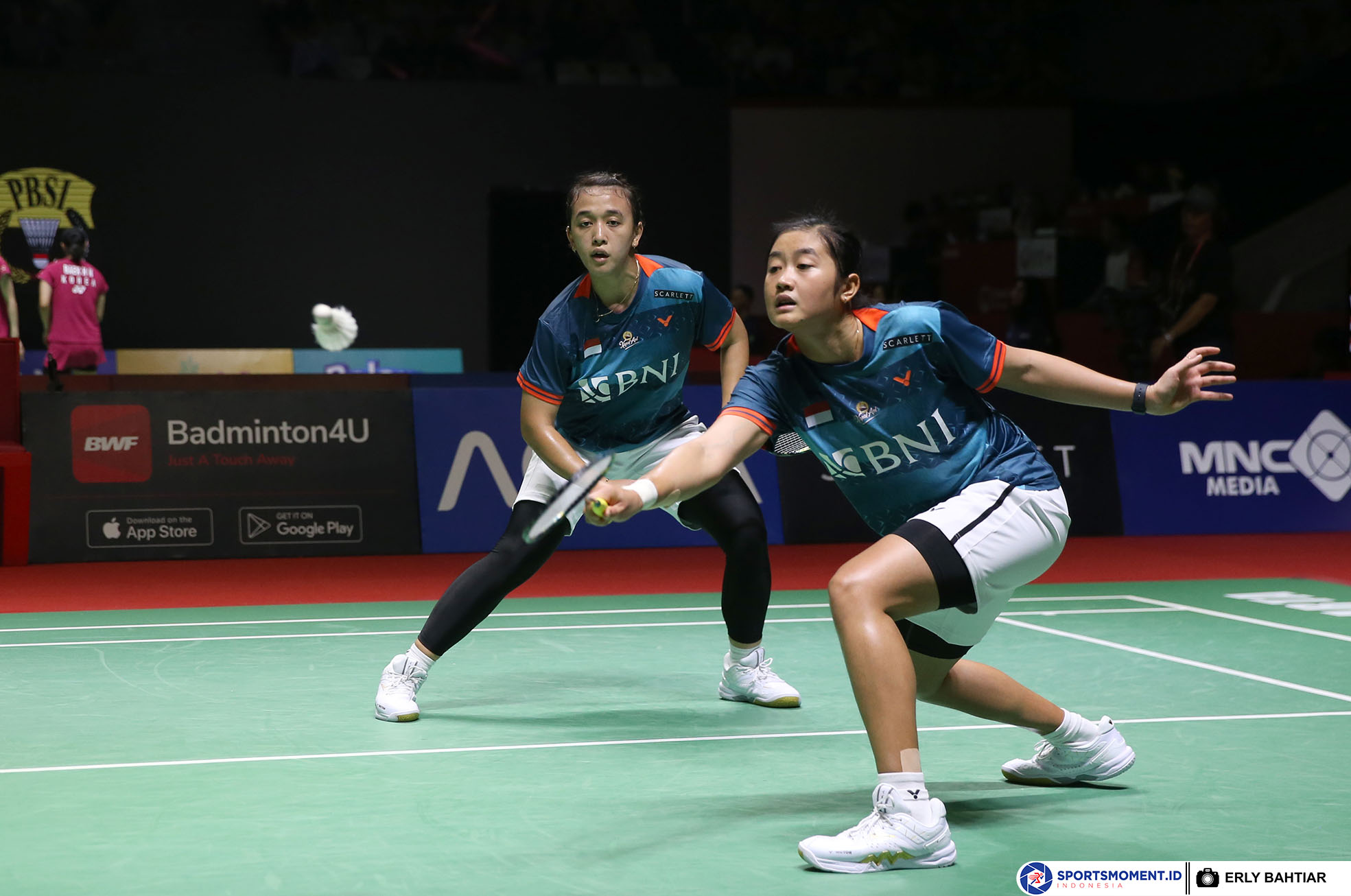 Ganda putri Indonesia, Febriana Dwipuji Kusuma/Amalia Cahaya Pratiwi dikalahkan ganda putri nomor satu asal Tiongkok, Chen Qing Chen/Jia Yi Fan dua gim langsung, 11-21, 12-21 pada babak kedua gelaran Kapal Api Group Indonesia Open 2023 di Istora Senayan Jakarta, Kamis (15/6). ( Foto : HO/Humas PP PBSI/Erly Bahtiar/Sportsmoment )