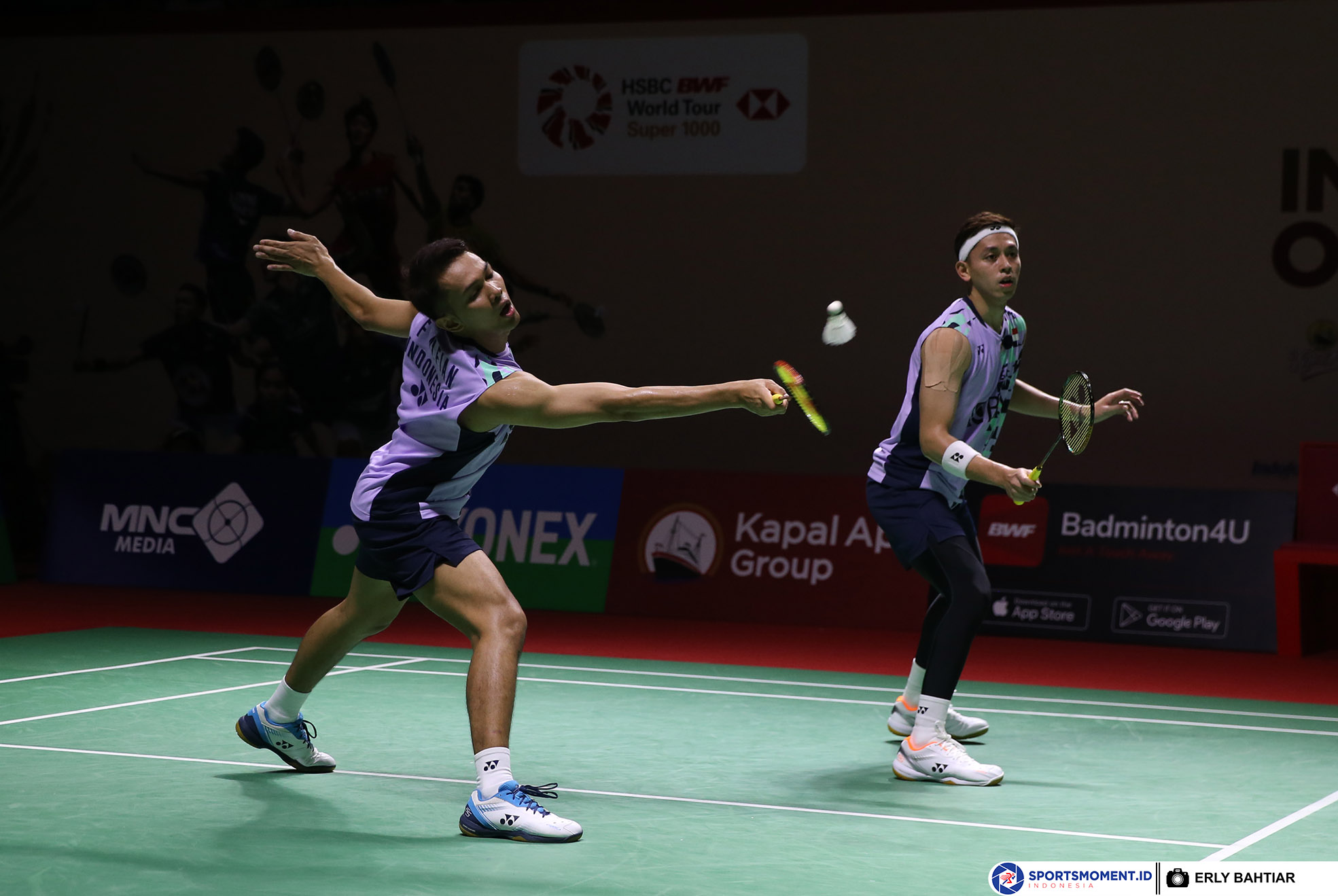 Ganda putra Indonesia, Fajar Alfian/Muhammad Rian Ardianto berhasil mengalahkan ganda putra asal Tiongkok, Ren Xiang Yu/Tan Qiang dua gim langsung, 21-14, 21-17 pada babak kedua gelaran Kapal Api Group Indonesia Open 2023 di Istora Senayan Jakarta, Kamis (15/6). ( Foto : HO/Humas PP PBSI/Erly Bahtiar/Sportsmoment )