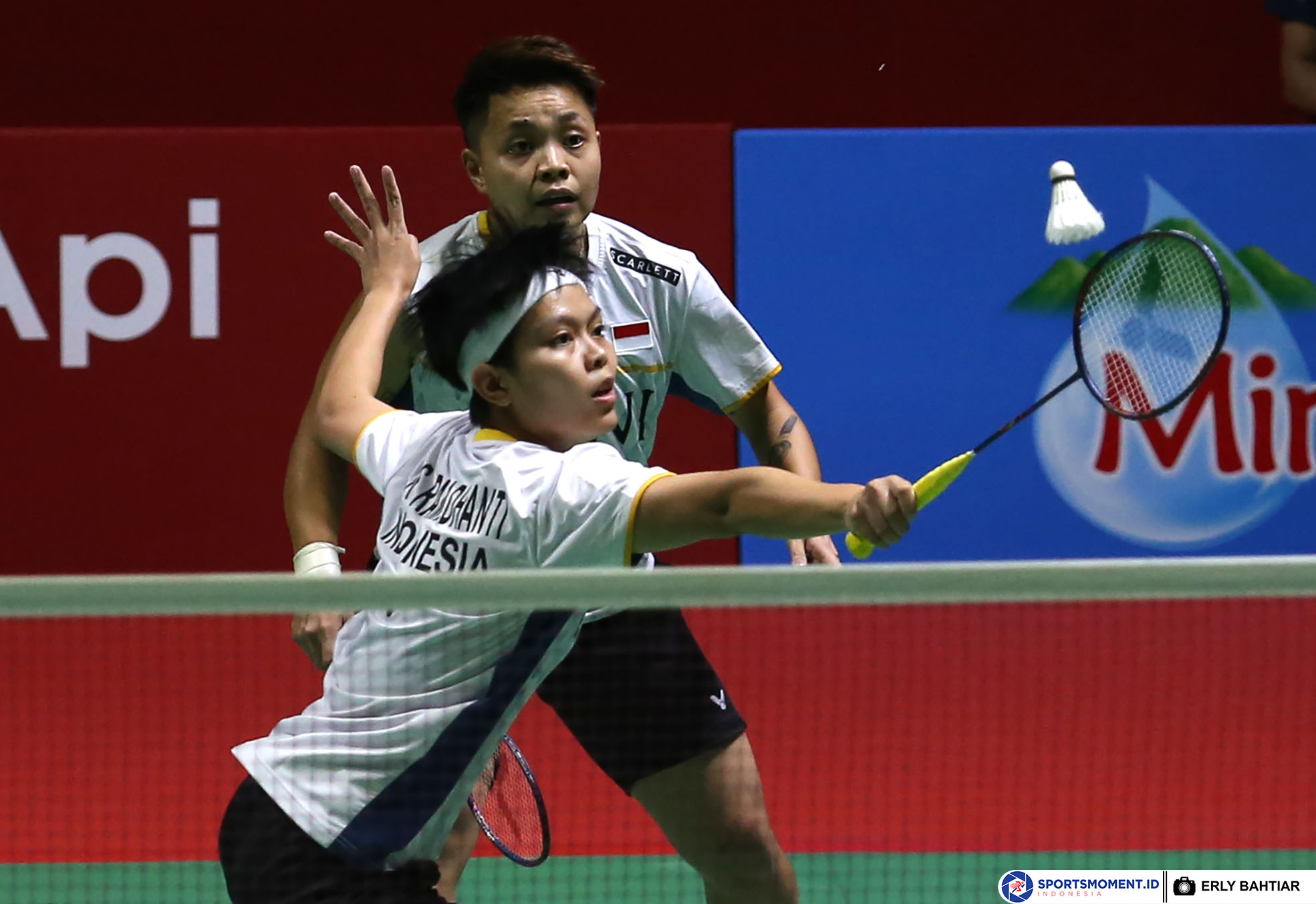 Ganda putri Indonesia, Apriyani Rahayu/Siti Fadia Silva Ramadhanti dikalahkan ganda putra Jepang, Yuki Fukushima/Sayaka Hirota dua gim langsung, 13-21, 13-21 pada babak perempatfinal gelaran Kapal Api Group Indonesia Open 2023 di Istora Senayan Jakarta, Jum'at (16/6). ( Foto : HO/Humas PP PBSI/Erly Bahtiar/Sportsmoment )