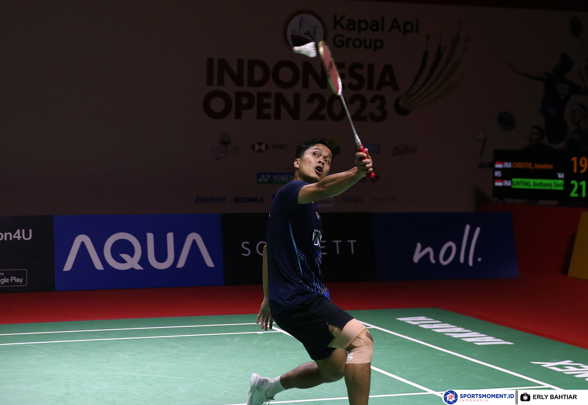 Tunggal putra Indonesia, Anthony Sinisuka Ginting berhasil mengalahkan kompatriotnya, Jonatan Christie dua gim langsung, 21-19, 21-16 pada babak perempatfinal gelaran Kapal Api Group Indonesia Open 2023 di Istora Senayan Jakarta, Jum'at (16/6). ( Foto : HO/Humas PP PBSI/Erly Bahtiar/Sportsmoment )