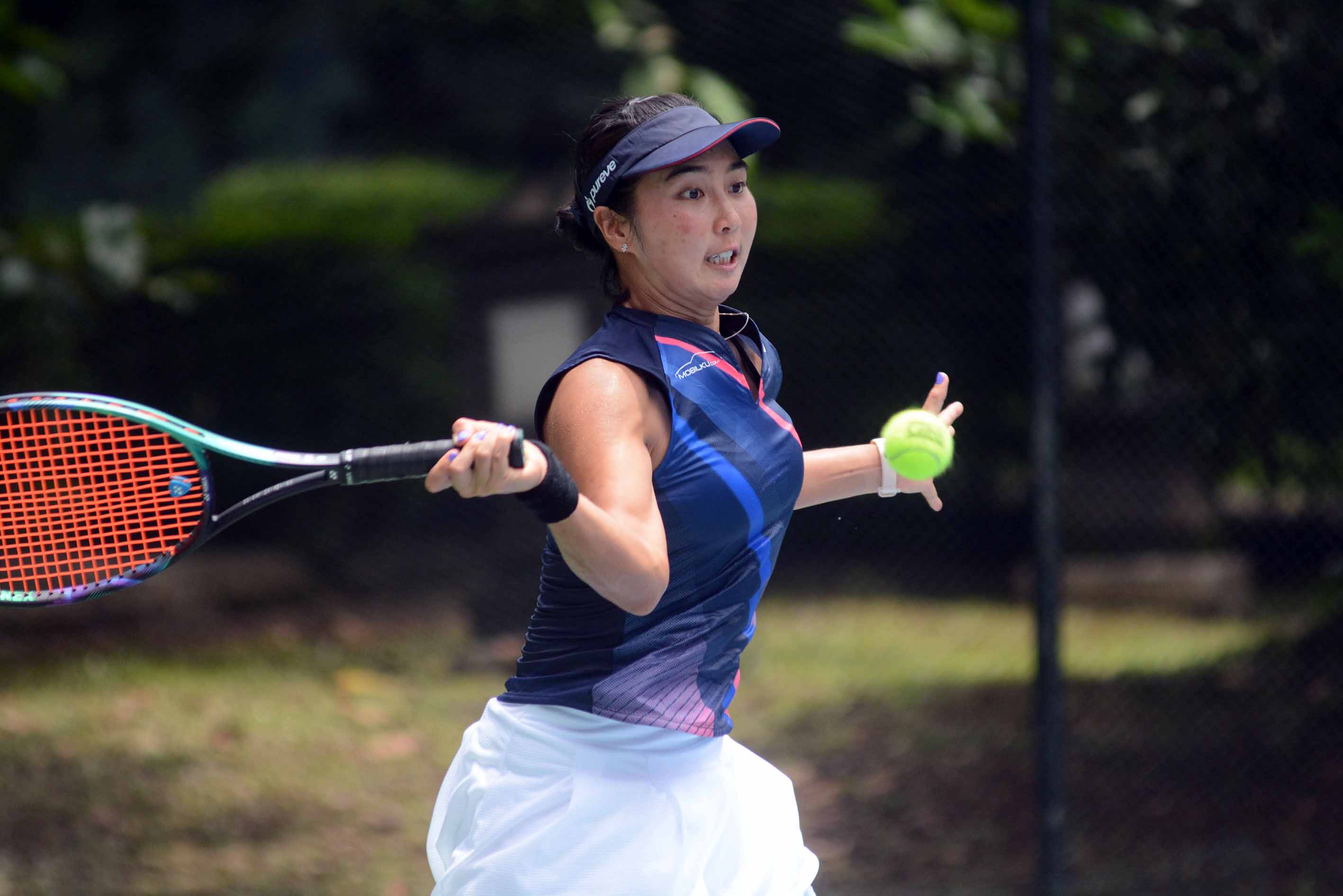 Petenis Jawa Timur, Aldila Sutjiadi dalam pertandingan babak pertama turnamen nasional Mandiri Tennis Open 2022 di lapangan tenis The Sultan Hotel & Residence Jakarta, Rabu 9 Februari 2022. Unggulan pertama tunggal putri itu berhasil mengalahkan Putu Kevalaih (DKI) 6-0 6-0. (Foto: HO/DwiAri Setyadi/tennisindonesia.com/sportsmoment.id)